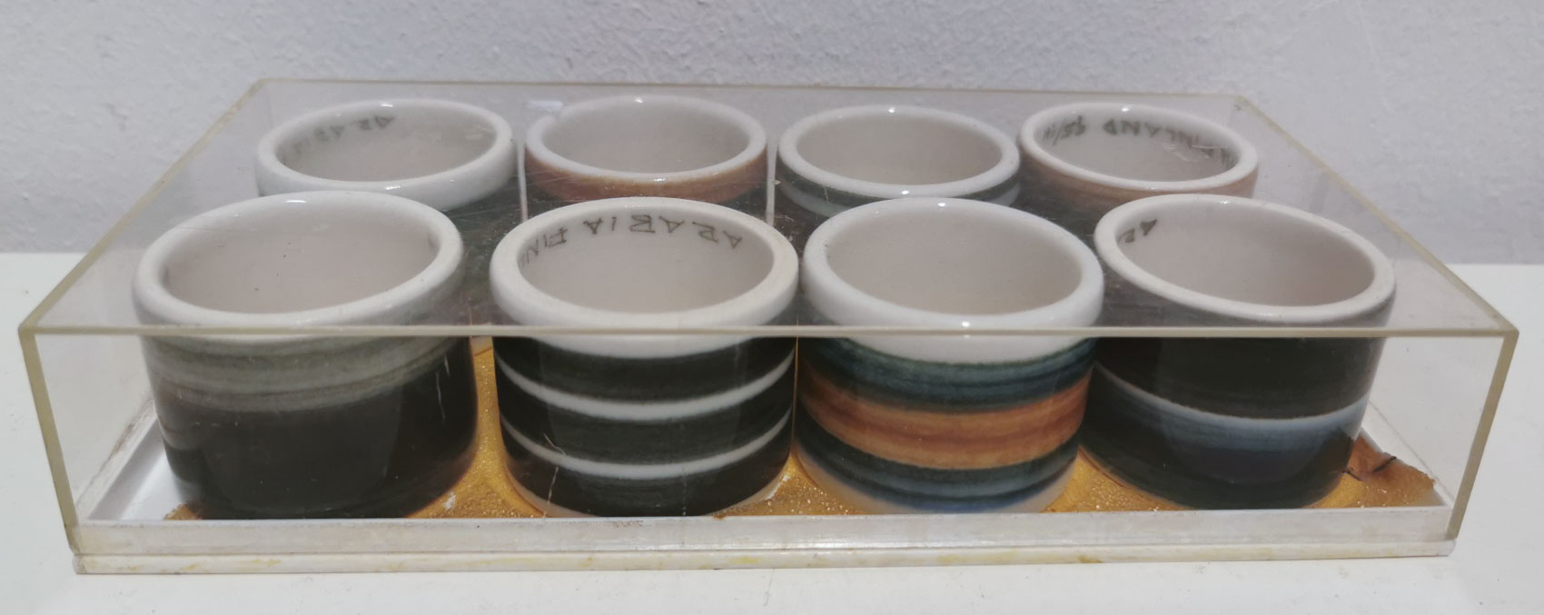 Arabia, Servettirenkaat, Gunnel Sallmen, 1960-luvulta, käsin maalatut, halkaisija 4.5 cm, 135€ rasia