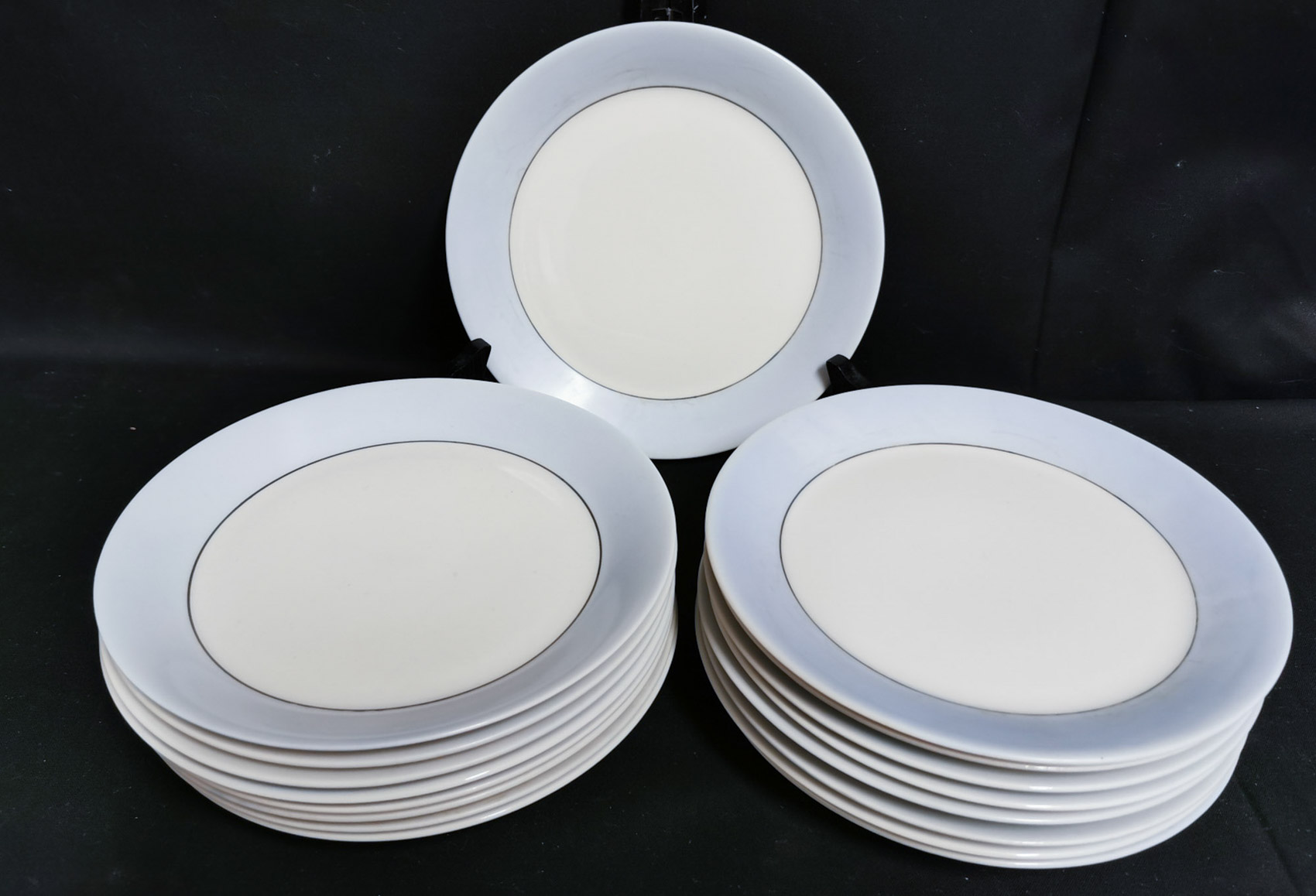 Arabia, sommit.komp, asetit 17 kpl, halkaisija 17.5 cm, Design Esteri Tomula, värieroja lautasissa, 15 € kpl