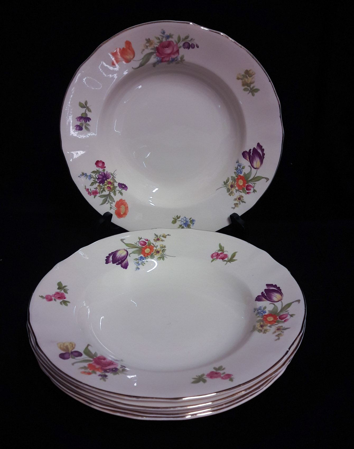Arabia kesäkukka syvät lautaset 5kpl, uuden veroiset, halkaisija 23cm, 1932-49 leimalla.