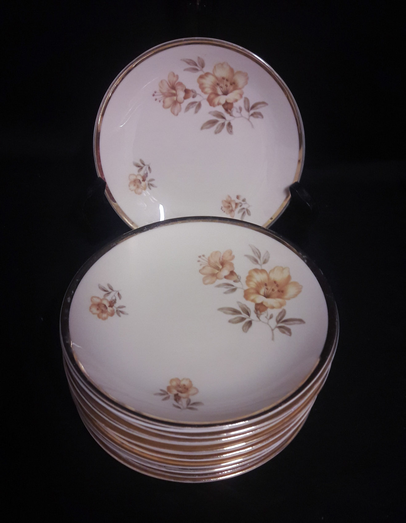 Arabia Myrna asetit, löytyy 1932-49 leimaalla, sekä 1970-80 luvun leimoilla, 26kpl, halkaisija 15cm, hinta 10€ kpl