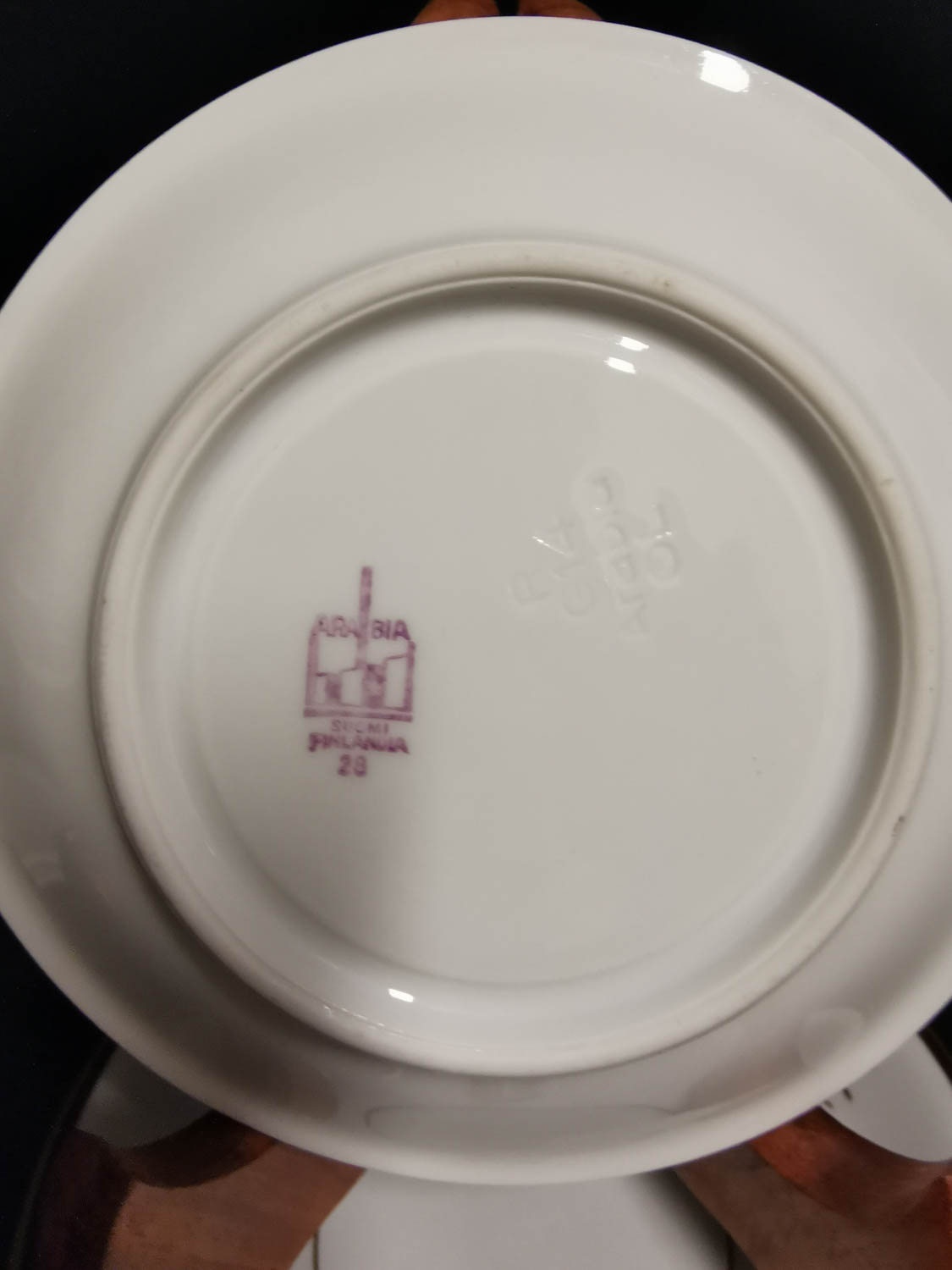 Arabia, tassit 14 kpl, halk 13cm, 10€ kpl, lautasissa kahta eri leimaa, katso kuvat.