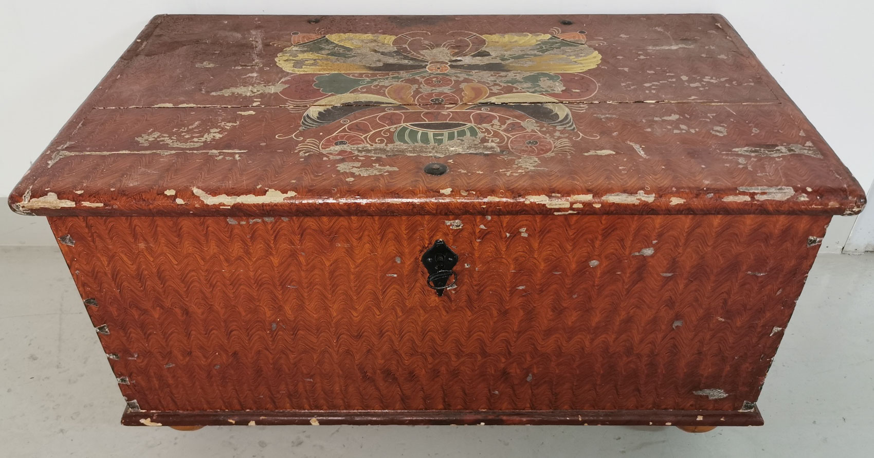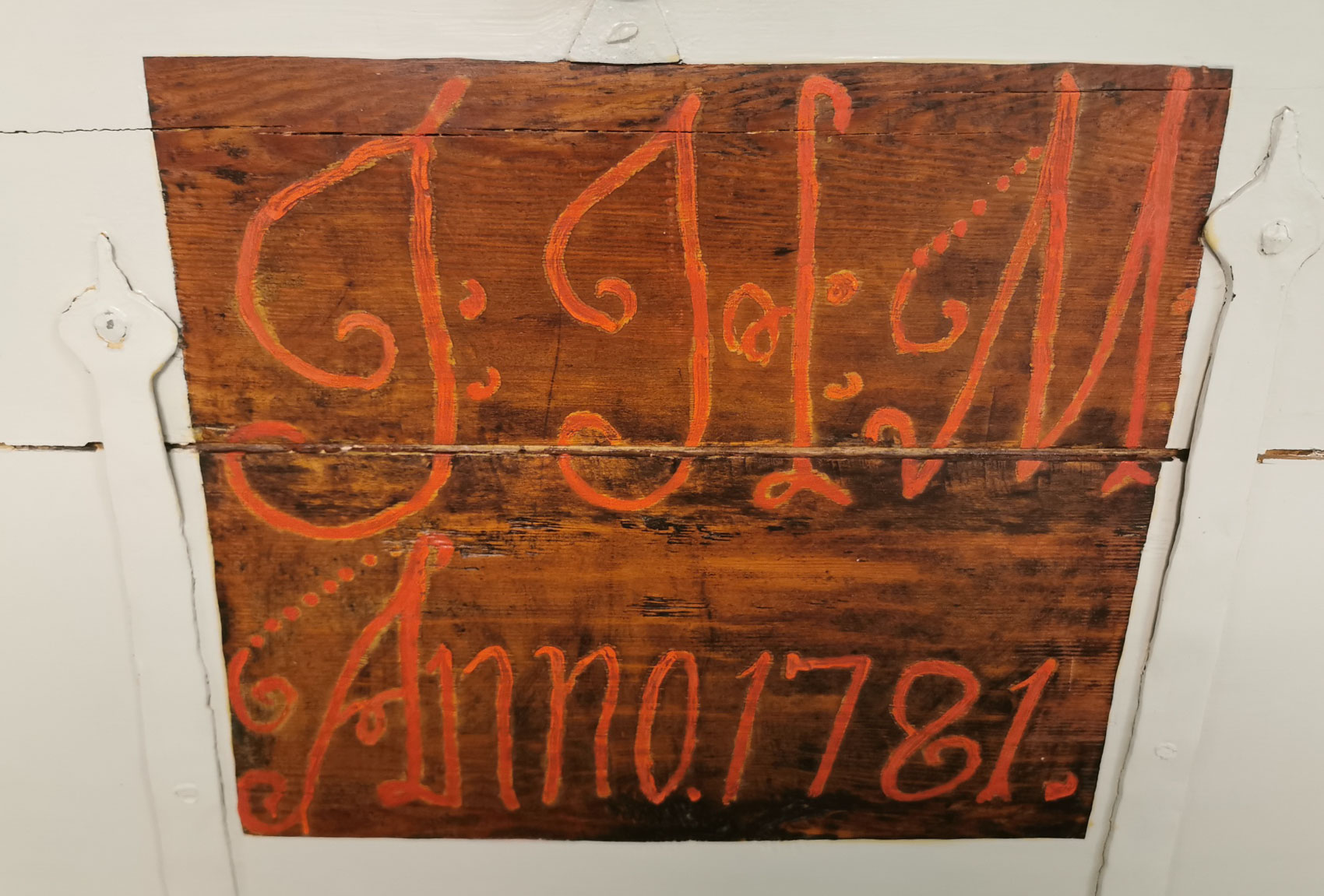Ootrattu arkku, vuosiluvulla 1781, alkuperäinen kunto, lukko ja avain