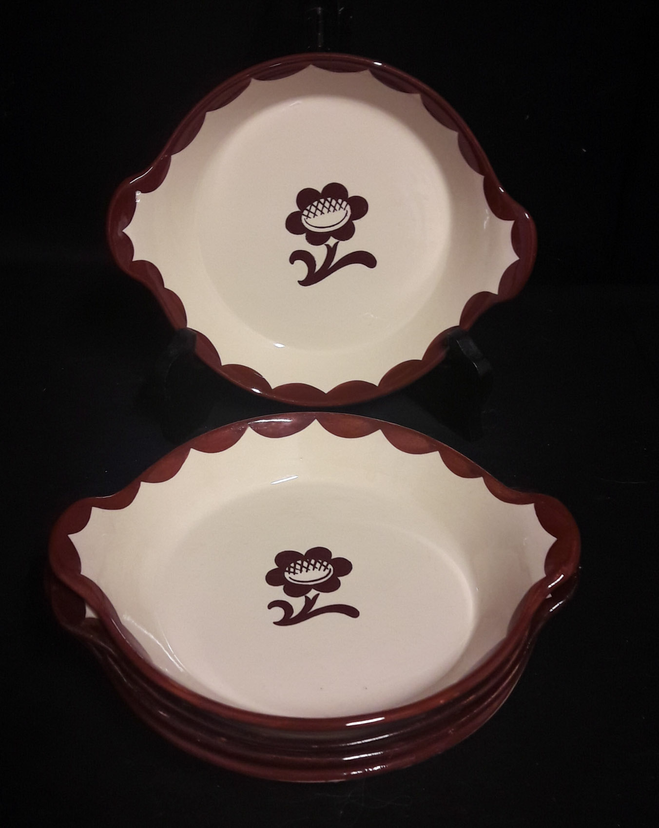 Tarjoiluvadit, valmistaja Gustavsberg, sarja Pyro, ruskea, runsaasti erimallisia ja kokoisia. Hinta 15€ alk kpl.