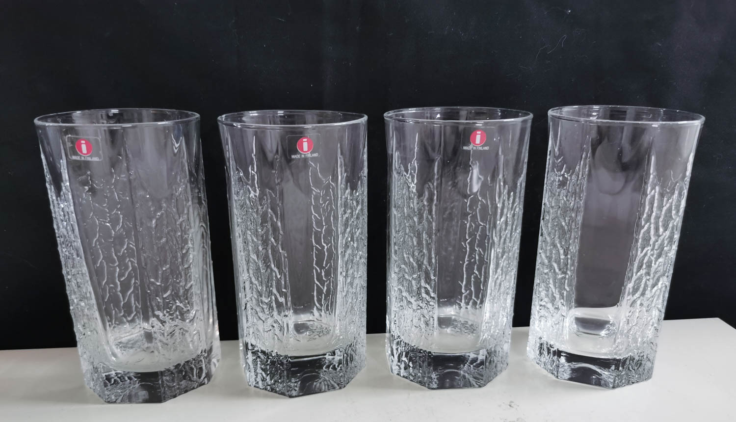 Iittala, Kalinka korkeat lasit, Korkeus 13.5cm, Halkaisija 7cm, 4 kpl, Hinta 23€ kpl