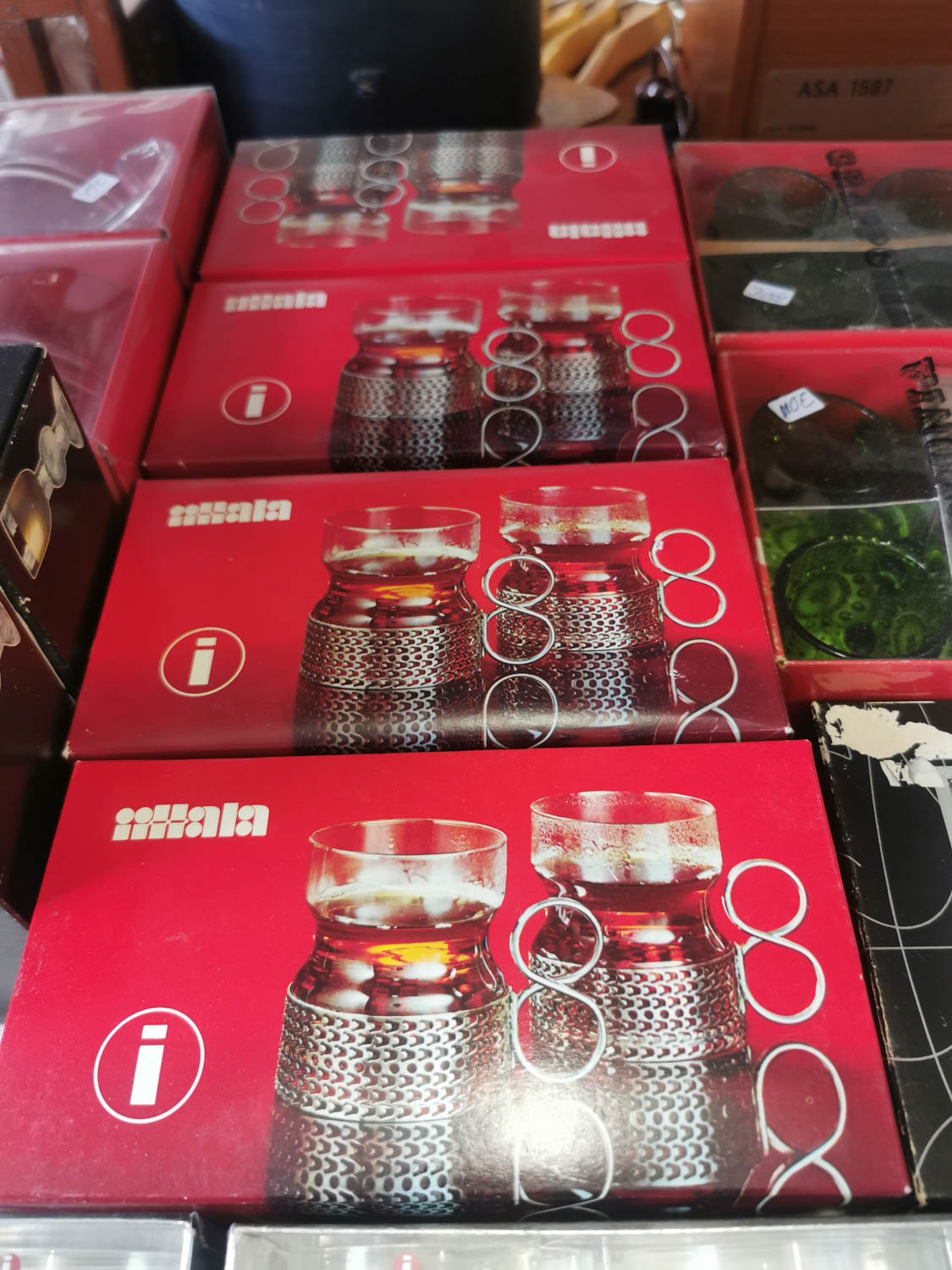 Iittala Tsaikka laseja, laatikoita 4 kpl, 2 lasia laatikossa, kirkas pidike, 40€ laatikko