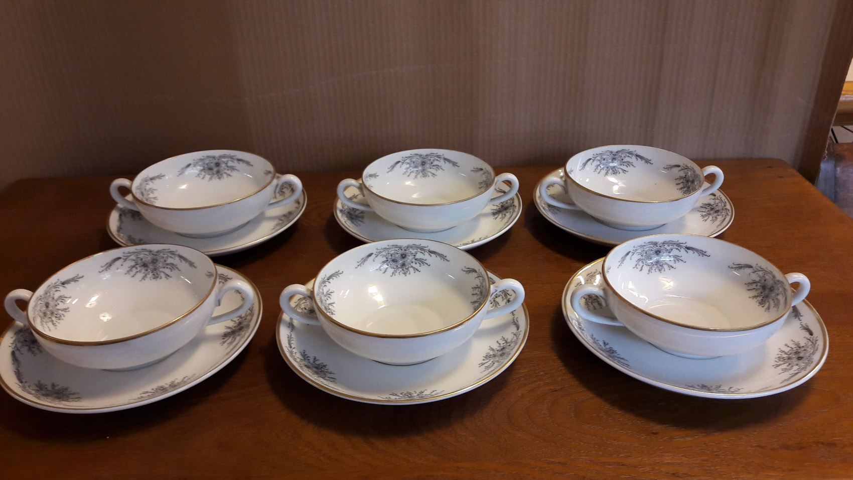 Arabian IRMA kaksikorvaiset aamiaiskulhot 6kpl, kupin korkeus 4cm ja halkaisija noin 12cm tassin halkaisija 17.5cm. 1960-luvulta, hyväkuntoiset. Hinta 240€ 6kpl.