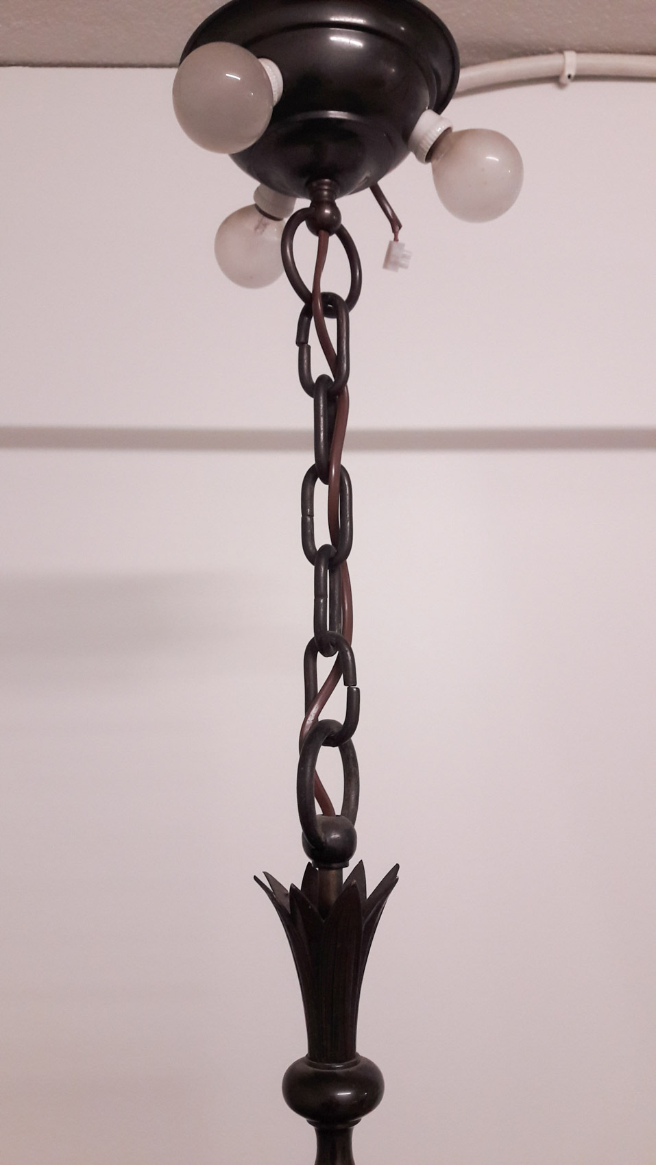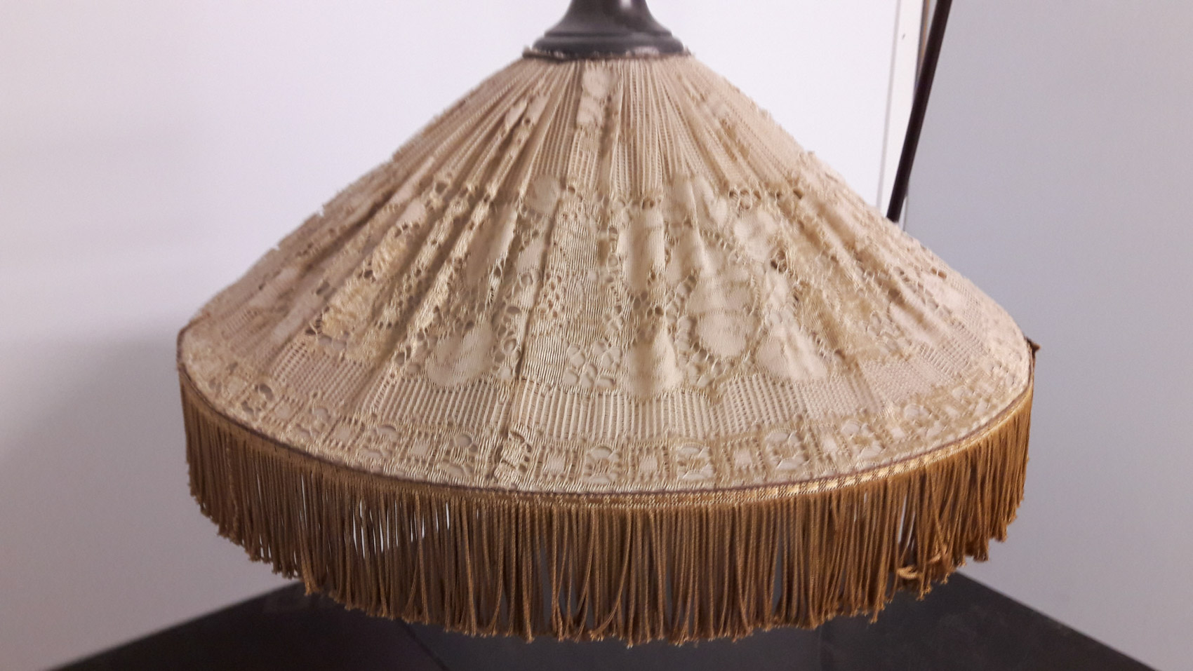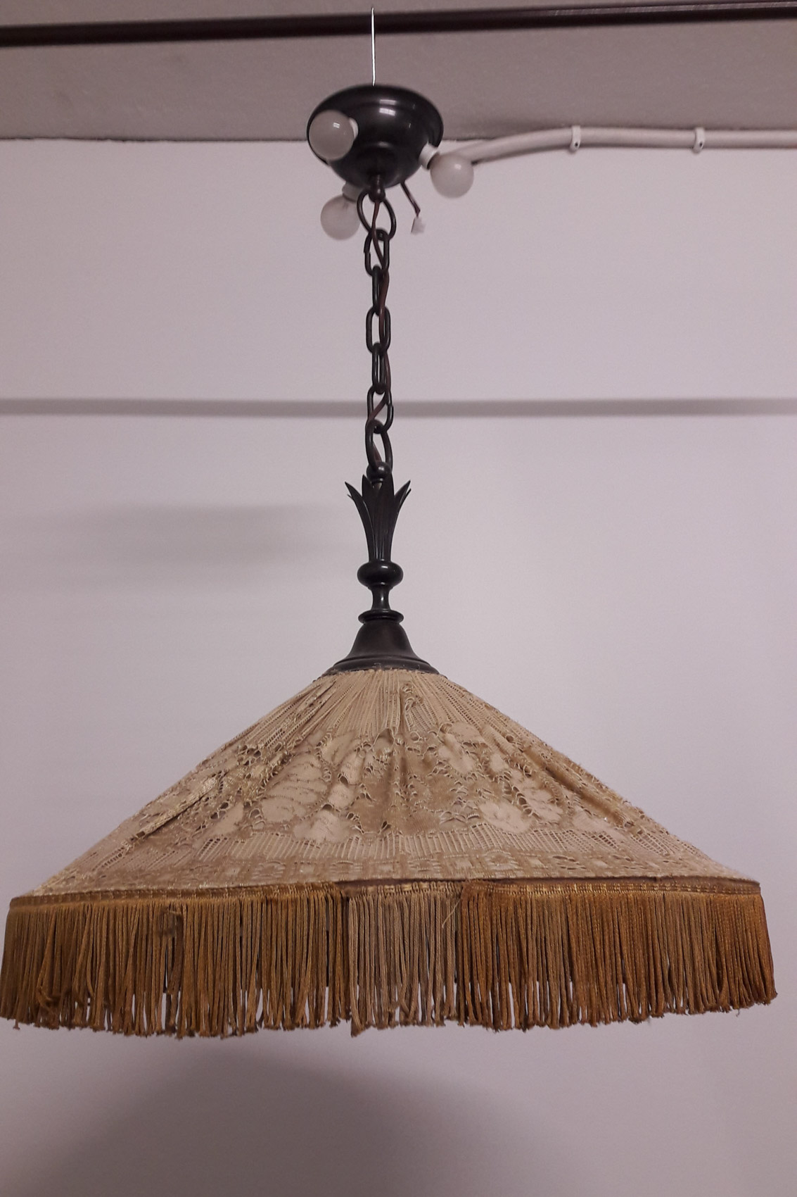 Jugend valaisin aivan 1900 luvun alku, kankainen alkuperäinen varjostin, varjostimen sisällä 2 valopistettä, ylhäällä 3 valopistettä, mitään ei puutuu, kaikki alkuperäistä