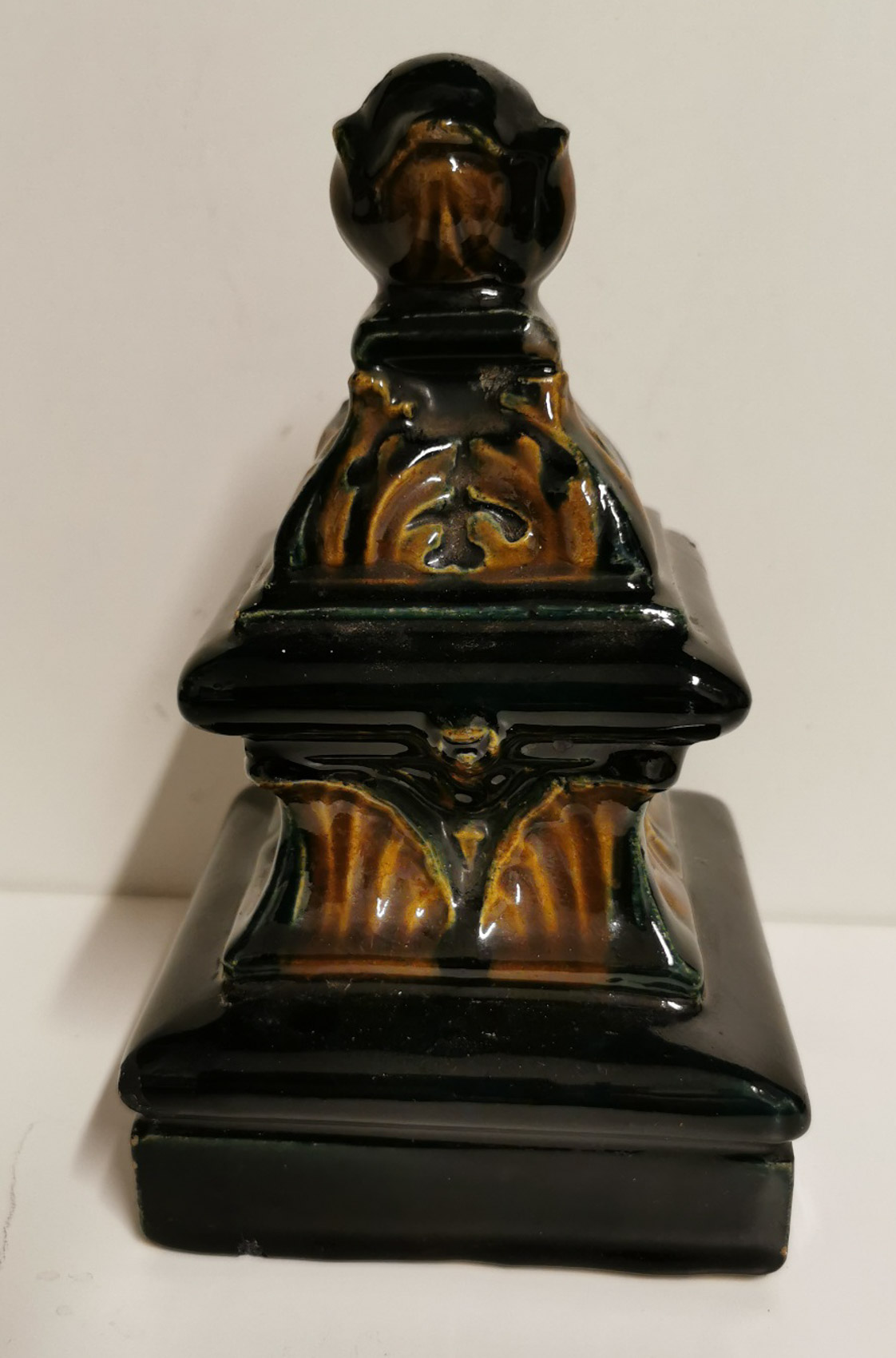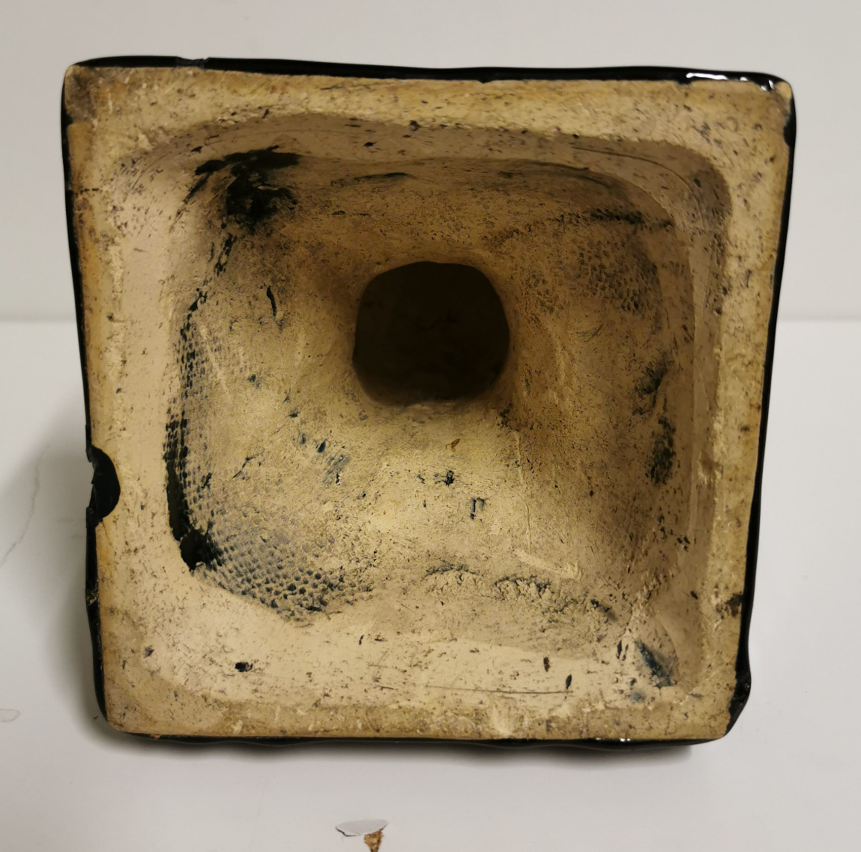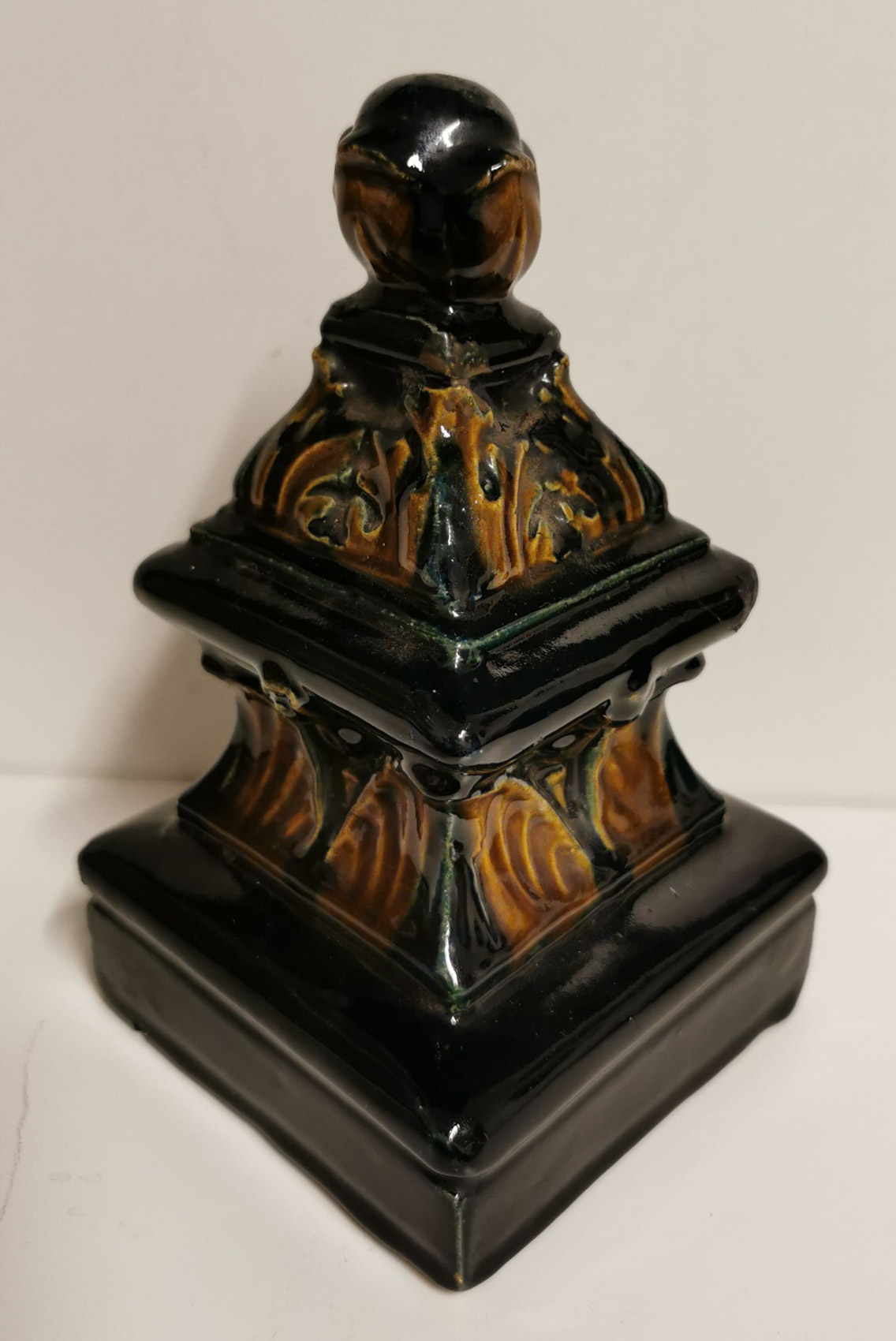 Turun Kaakelitehtaan valmistama kaakeliuunin ornamentti, 1900 luvun alku, korkeus, 21 cm 12cm x 12 cm.