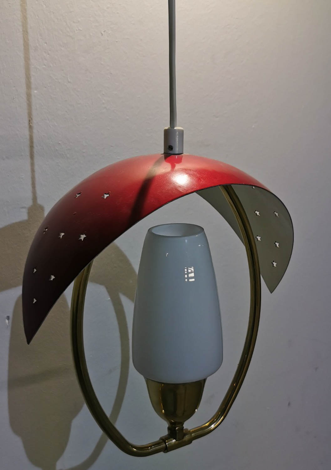 Kattovalaisin, Nukkumatti. Valinte, 1950-luku, korkeuden voi säätää johdosta, ehjä alkuperäinen lasinen kupu, varjostin maalattu peltiä.