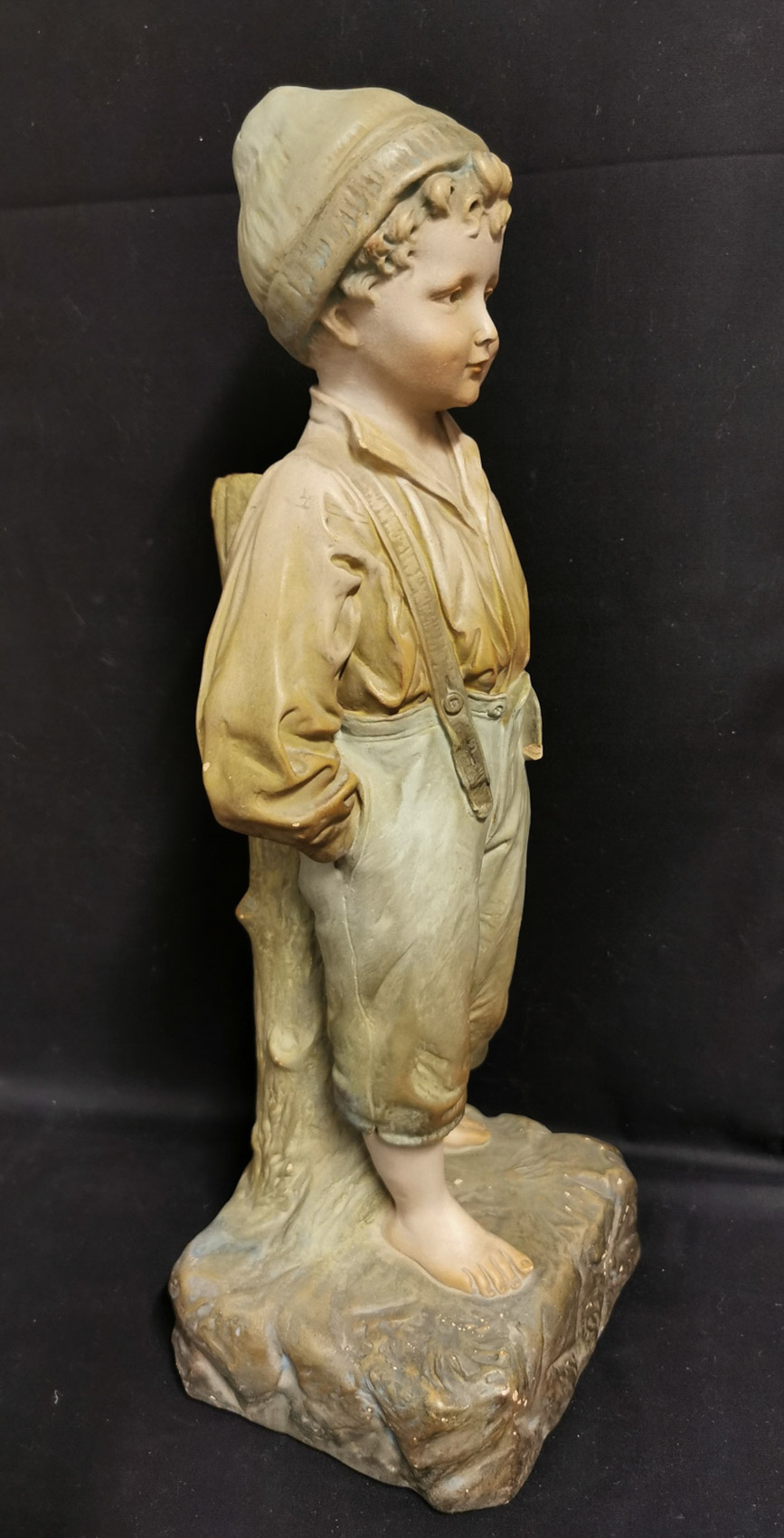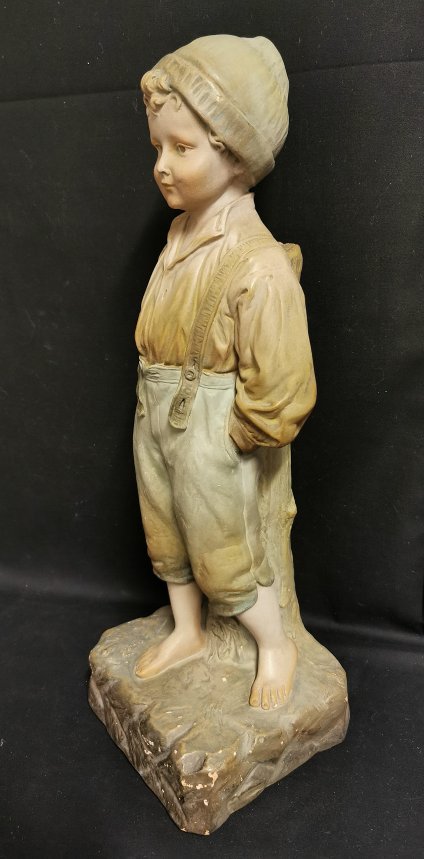 Isompi kipsinen figuuri, poika, noin 1910-20 luvulta, korkeus 48cm