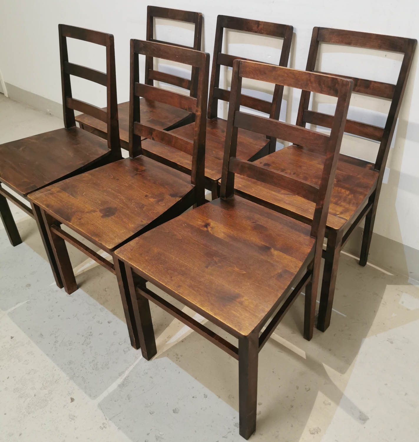 Ruokapöydän tuolit, 6 kpl. Koivua, tuolit 1940-50 -luvulta, siistit ja hyväkuntoiset, korkeus 44/85cm.