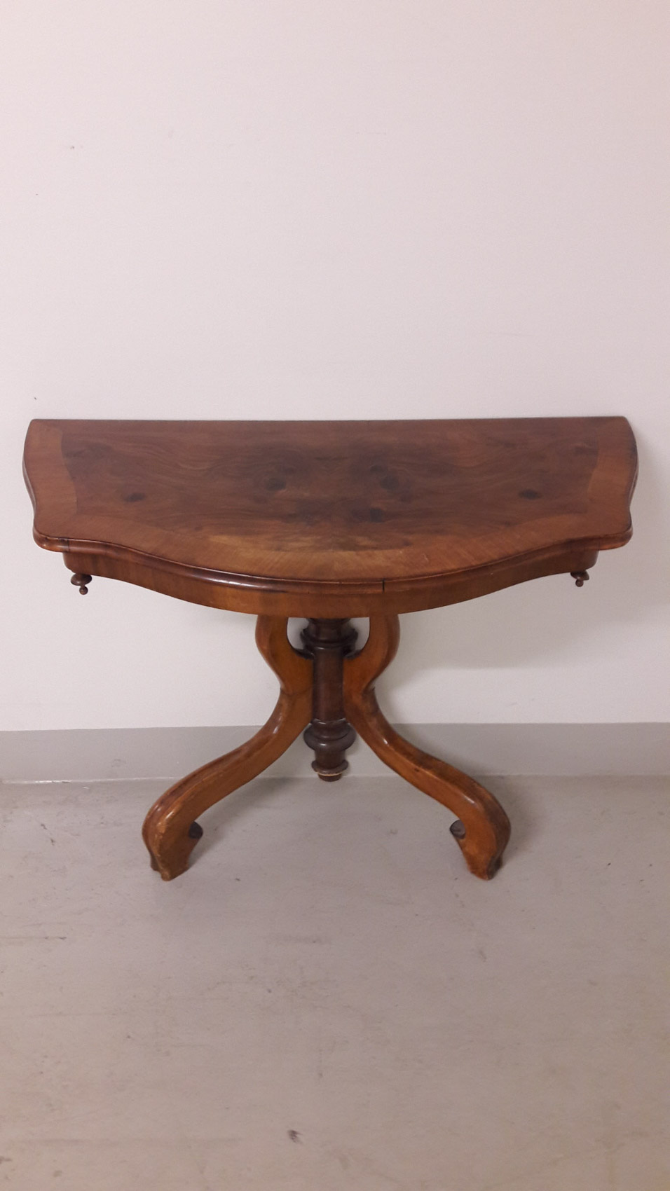 Pähkinäpuinen konsolipöytä 1800 luvun lopulta, leveys 96 cm syvyys 46 cm korkeus 77cm Hinta 475€