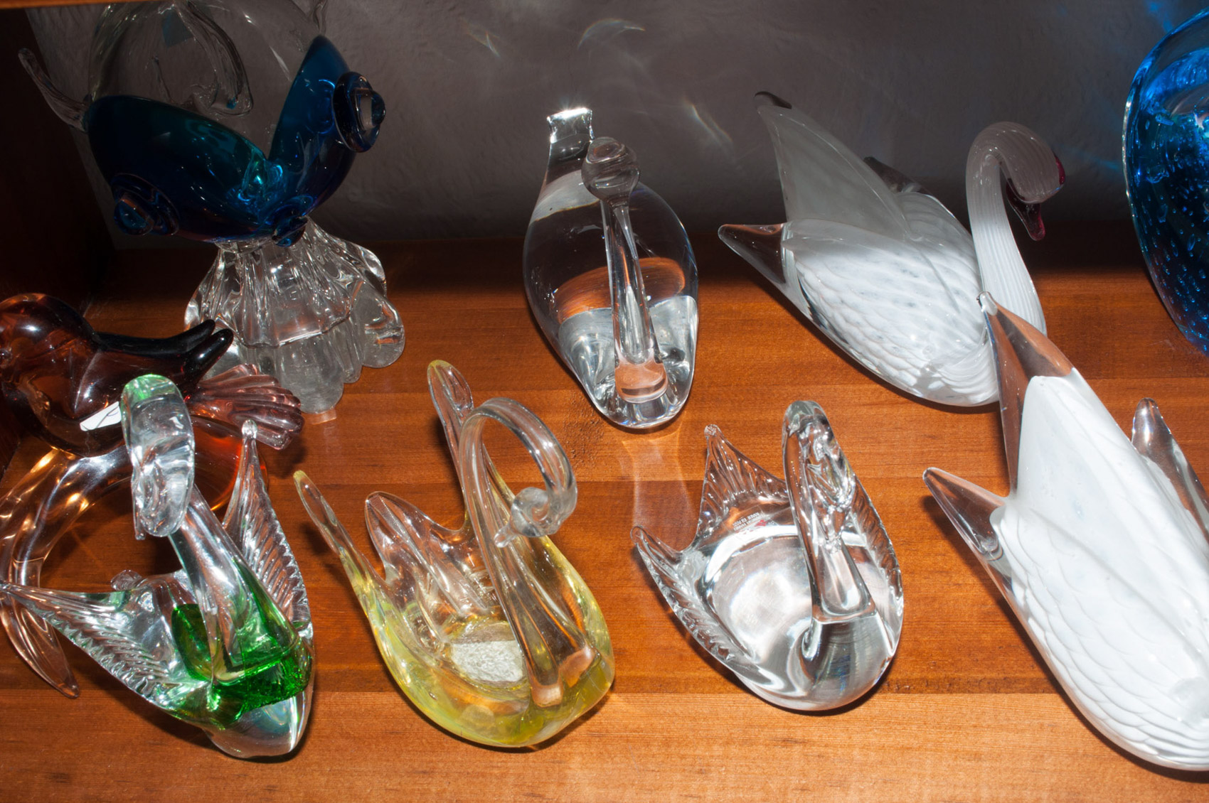 Lasiset joutsenet ym. keräilytavaraa runsaasti.