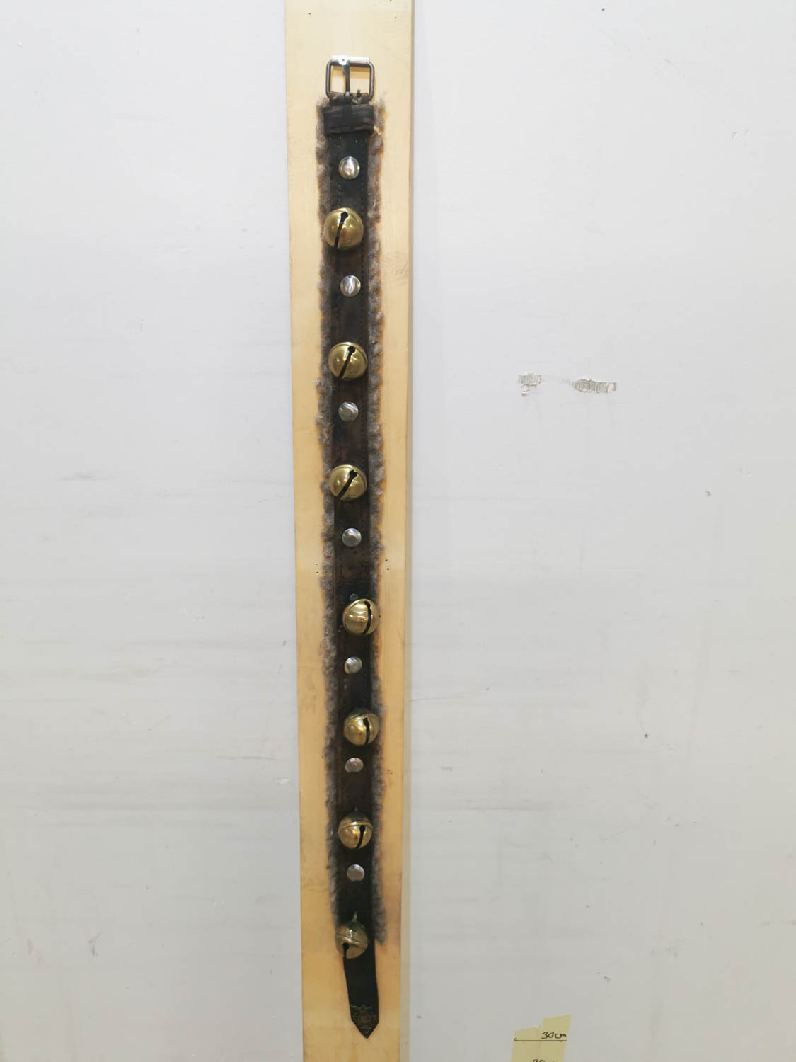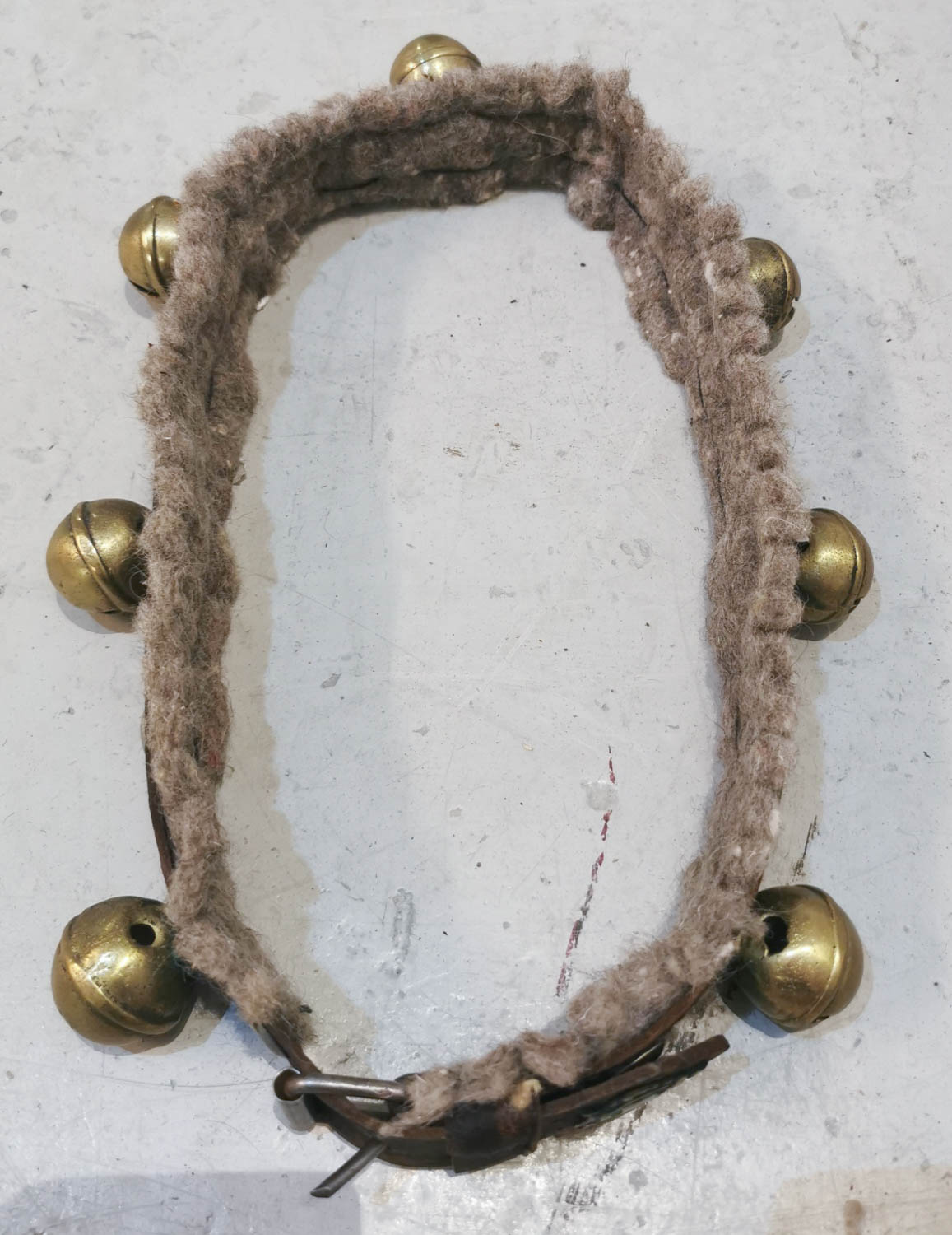 Kulkuset, pituus noin 90cm. Sisäpuoli lampaanvilla, 6 kpl messinkiset kellot, katso kaikki kuvat.