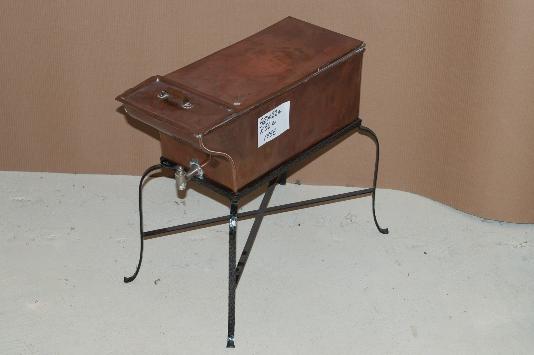 Kuparinen lämminvesi astia, jalustalla 1900 luvun alku