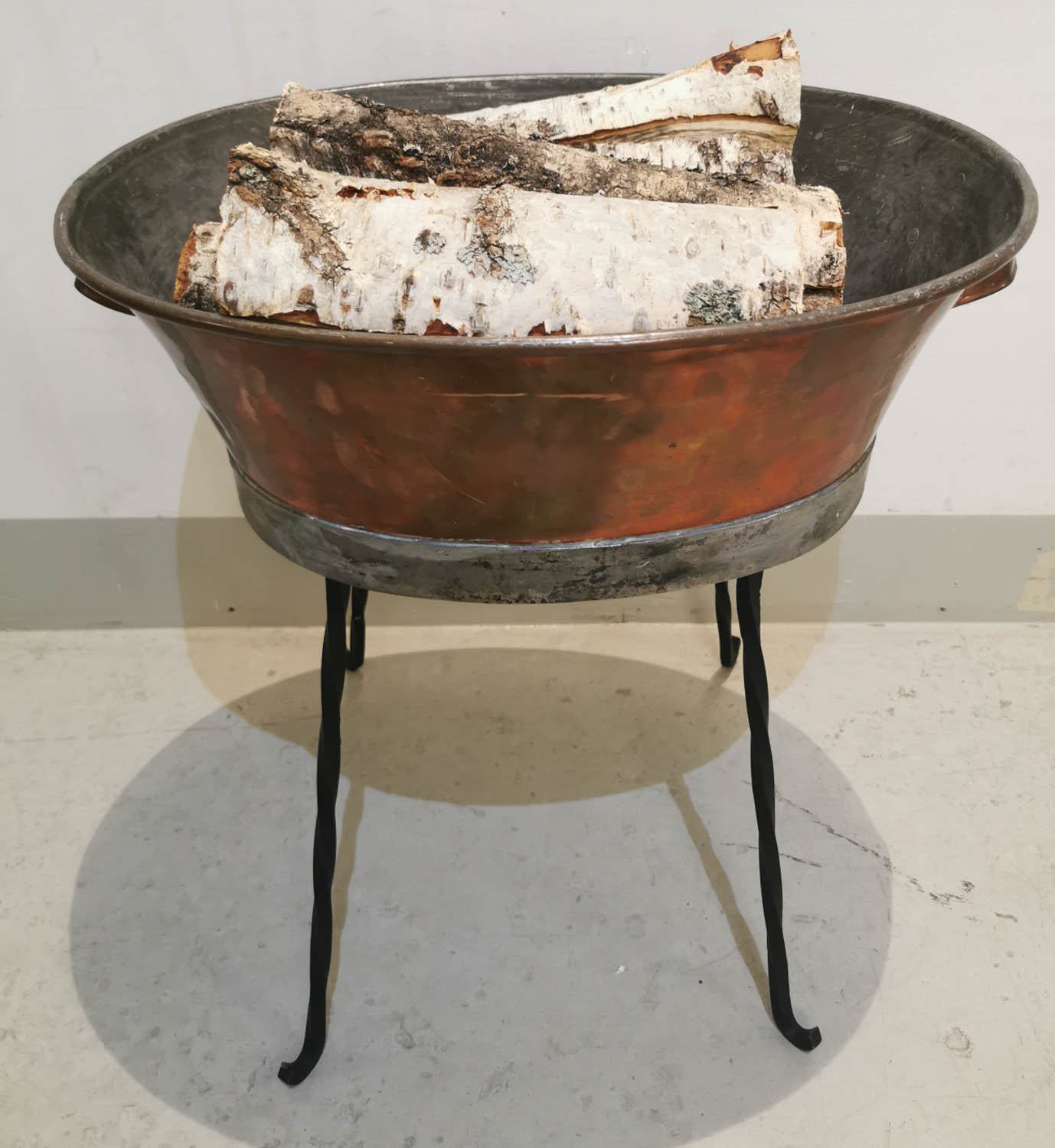Kuparinen pesusoikko, 1800/1900 -luvun vaihde, sopii takkapuille, tai kukille, ym 50 x 37cm korkeus 53cm
