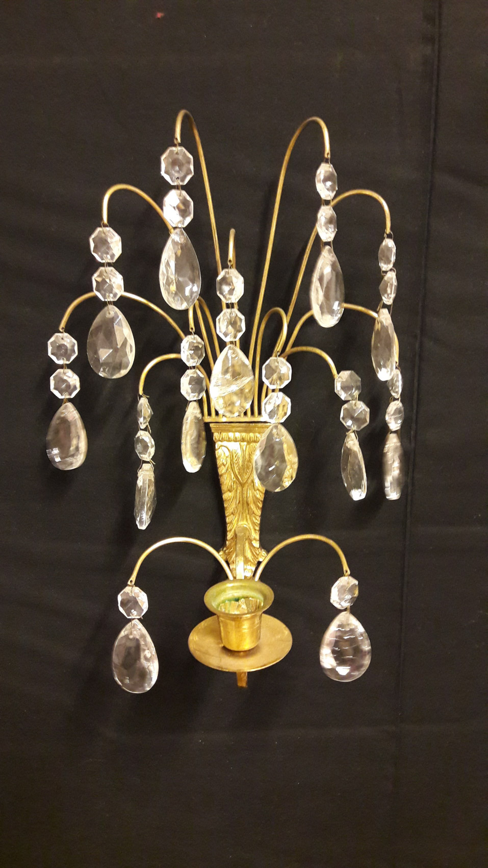 Messinkiset kynttilälampetit, kristalleilla. 2 kpl, myydään parina.
