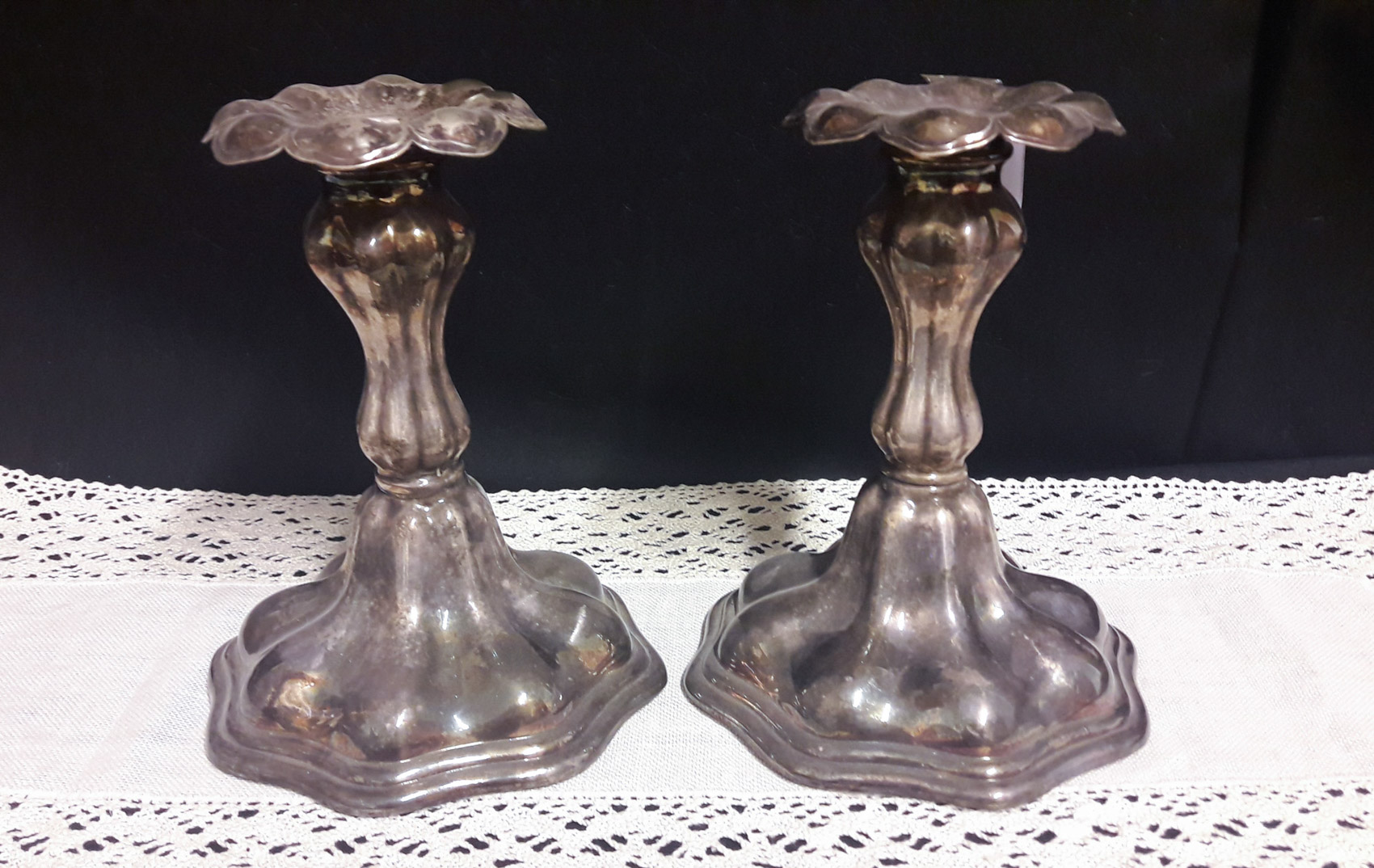 Uushopeiset kynttilänjalat pari, 1900 luvun alku, korkeus 16cm, hinta 115€ pari