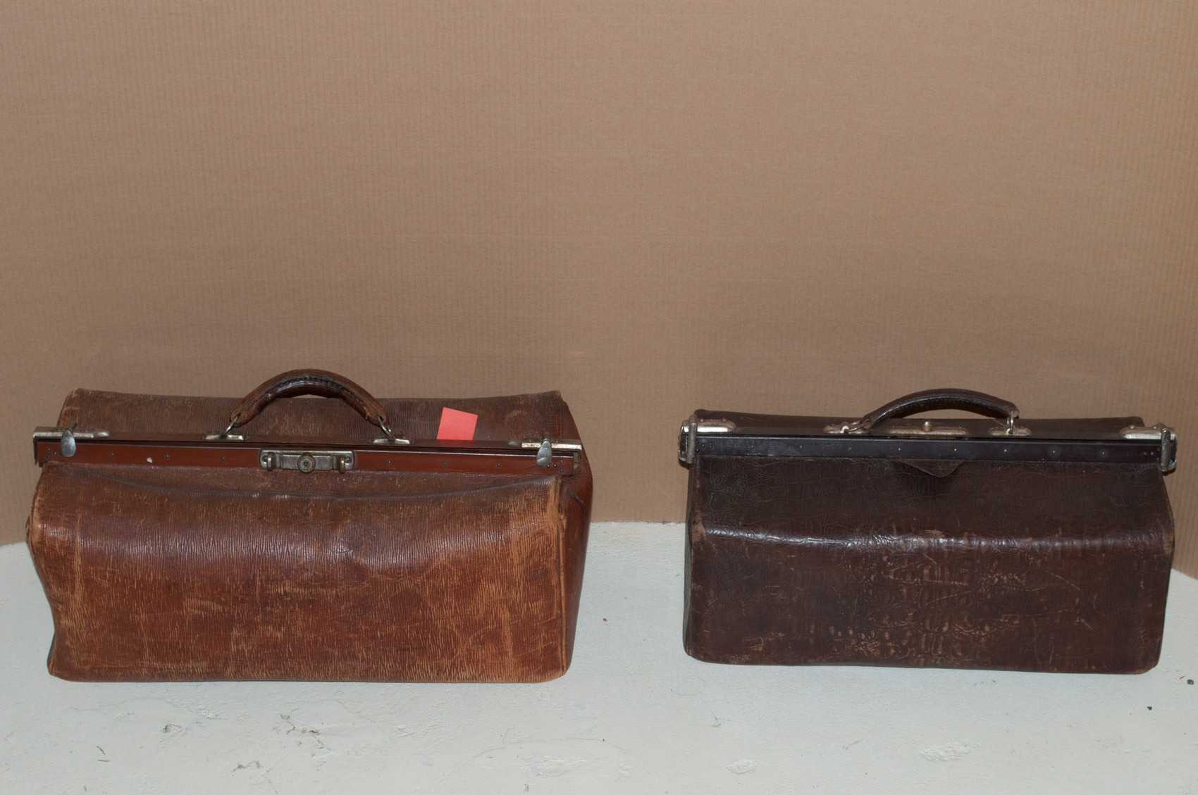 Nahkaiset lääkärinlaukut 2 kpl 1900 luvun alku, alkaen 85€ /kpl.