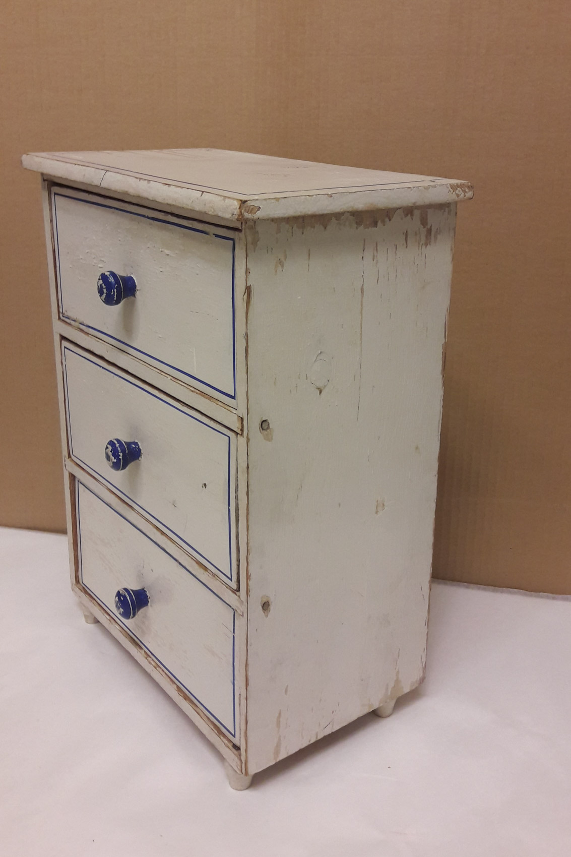Todella harvinainen pieni lasten lipasto 1800 luvun lopulta, kolme laatikkoa, siisti pieni huonekalu lapselle