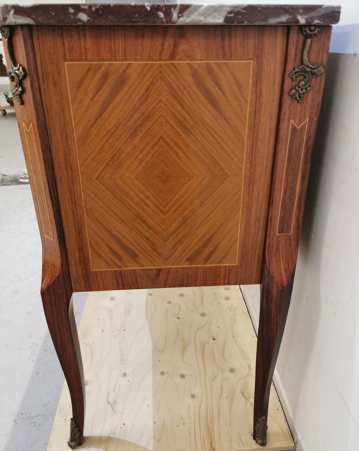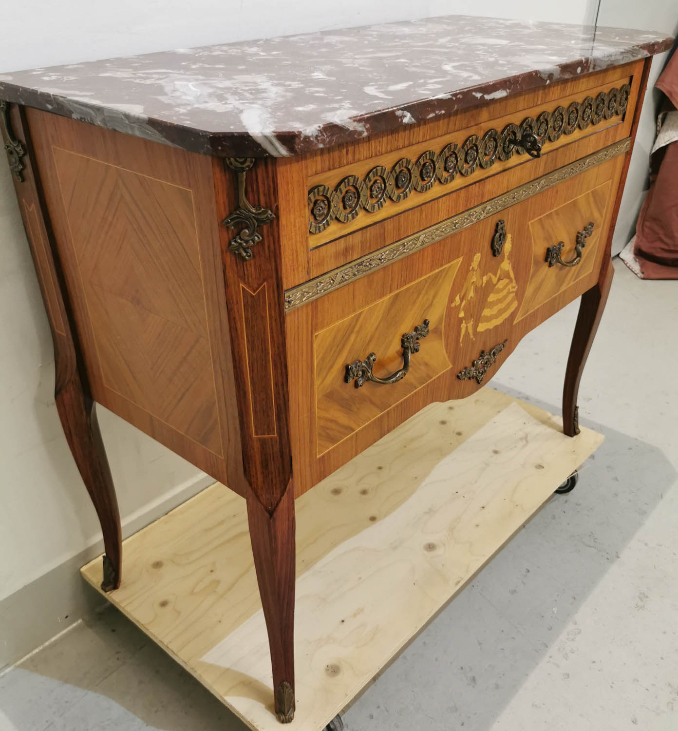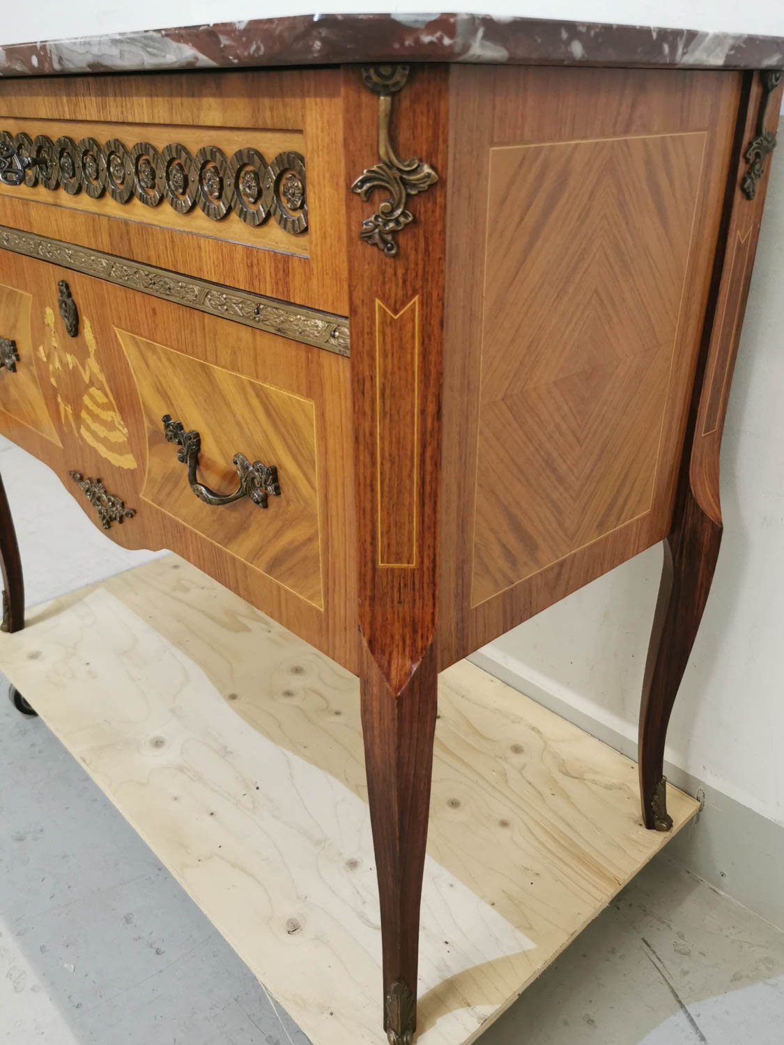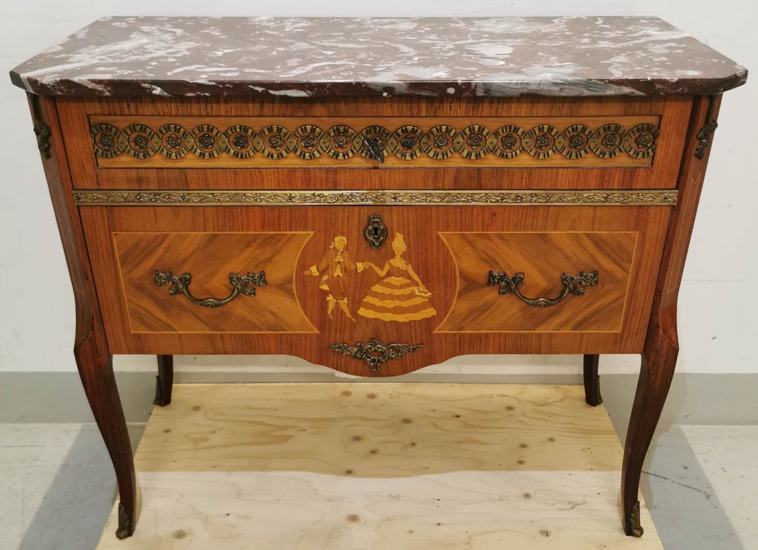 Kustavilaistyylinen lipasto, kahdella lukollisella laatikolla, sekä marmoritasolla, siisti ja hyväkuntoinen, 87 x 41 cm. Korkeus 73 cm.