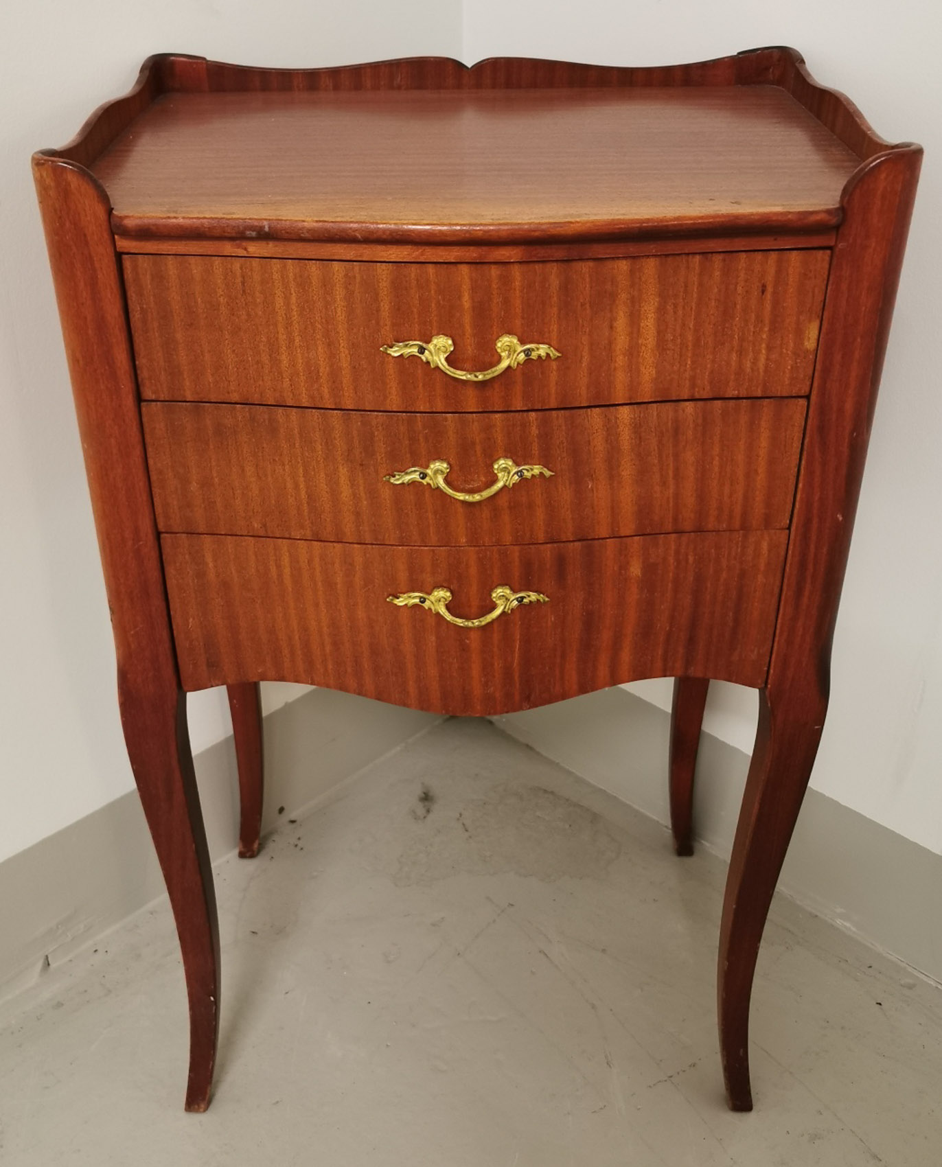 Pieni mahonkinen lipasto kolmella laatikolla vaikka eteiseen