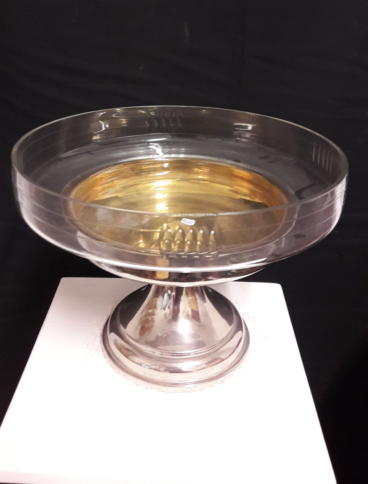 Kristallinen malja, uushopeinen jalusta, 1800 -1900-luvun vaihde