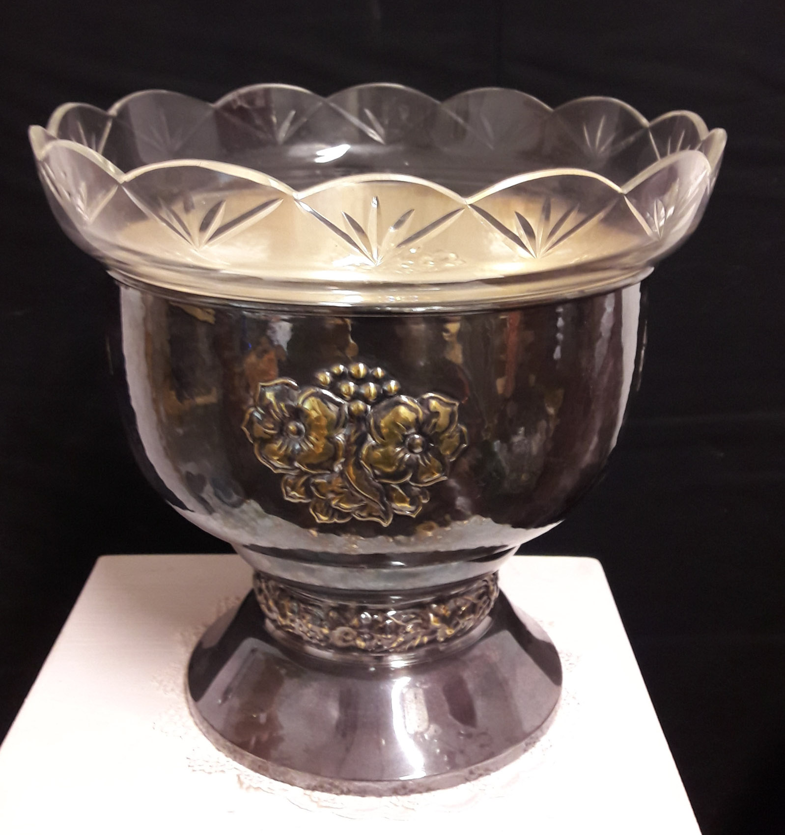 Kristallinen hiottu malja, uushopeinen jalusta, 1800-1900-luvun vaihde