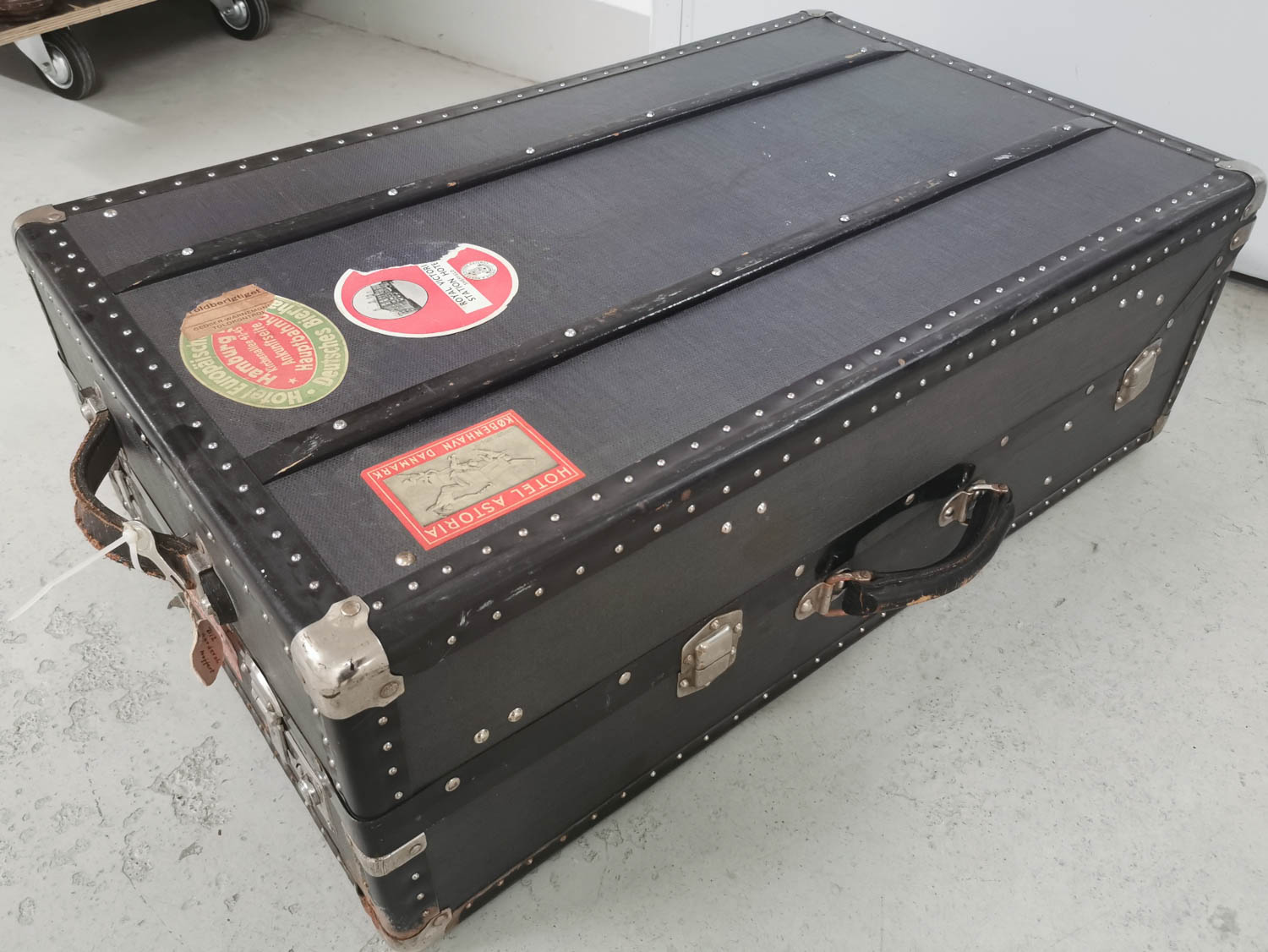 Matkalaukku, matkavaatekaappi, 1900-luvun alkupuoli, 75 x 48 cm korkeus 25 cm