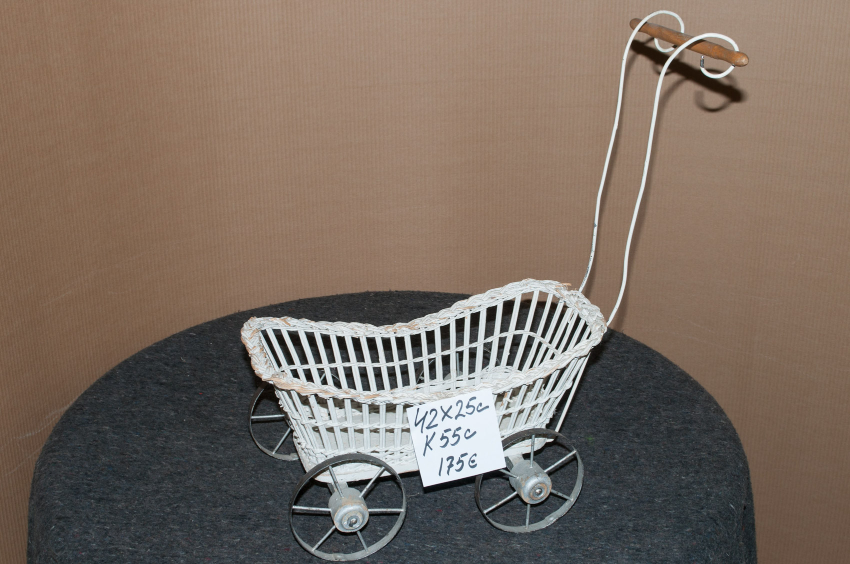 Rottinkiset valkoiset nukenvaunut noin 1910 luvulta.