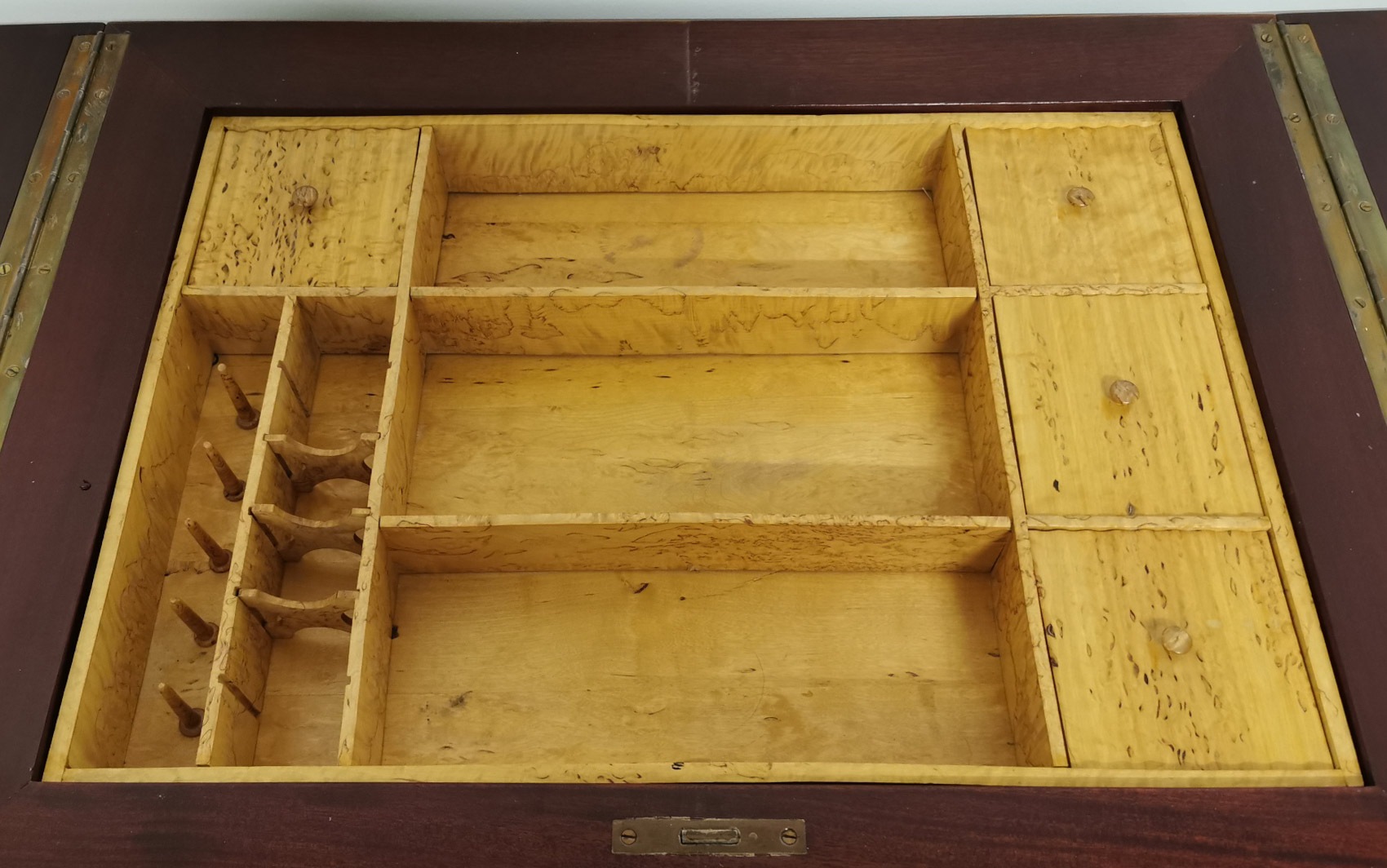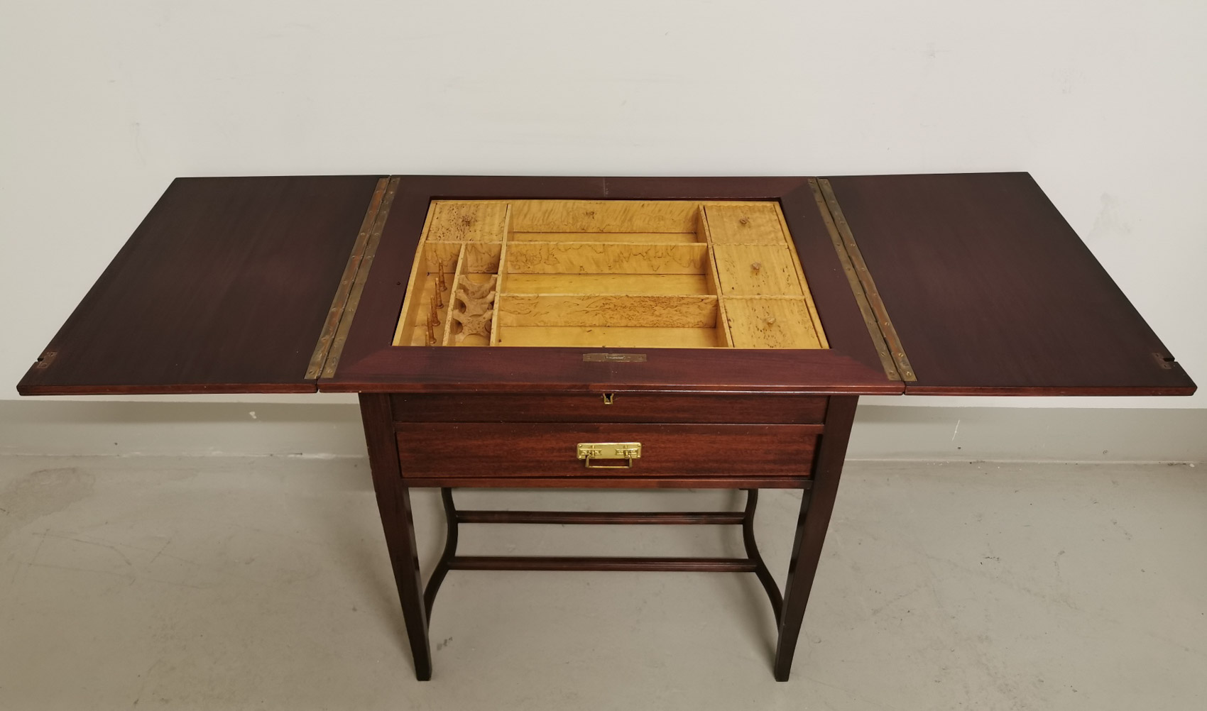 Jugend ompelupöytä 1900 luvun alku, lokeroita sisällä, lisäksi laatikko.