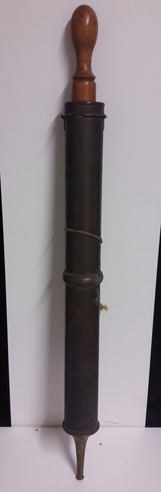Kuparinen ja messinkinen paloruisku, 1800 luvun lopulta, paloruisku ensisammutukseen, pituus 80cm
