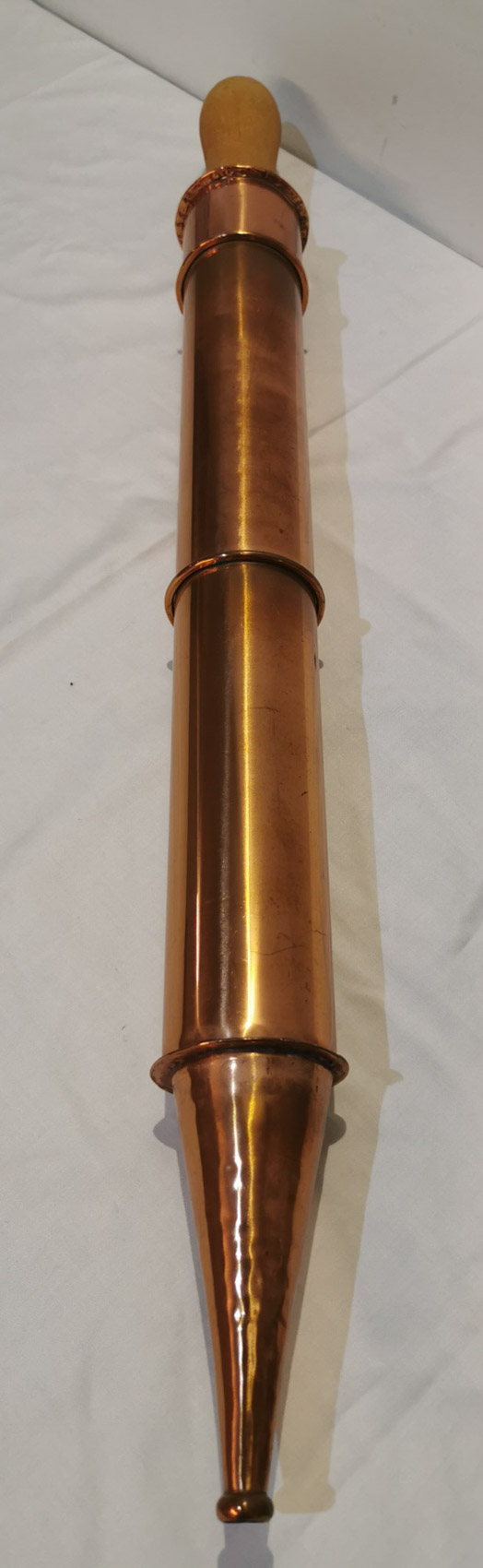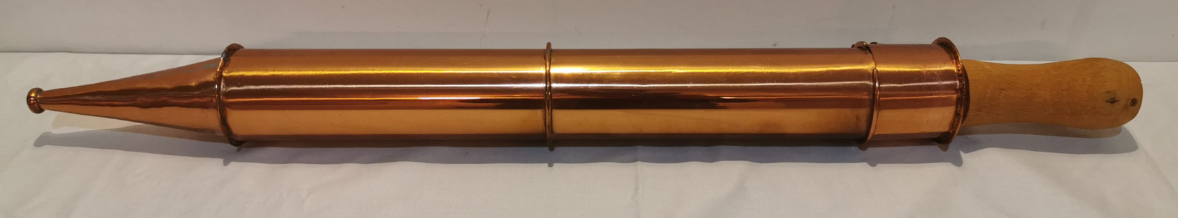 Kuparinen paloruisku, 1800-1900 luvun vaihde, pituus 80cm halkaisija 7cm, ruiskuja 2 kpl samanlaisia, 125€ kpl