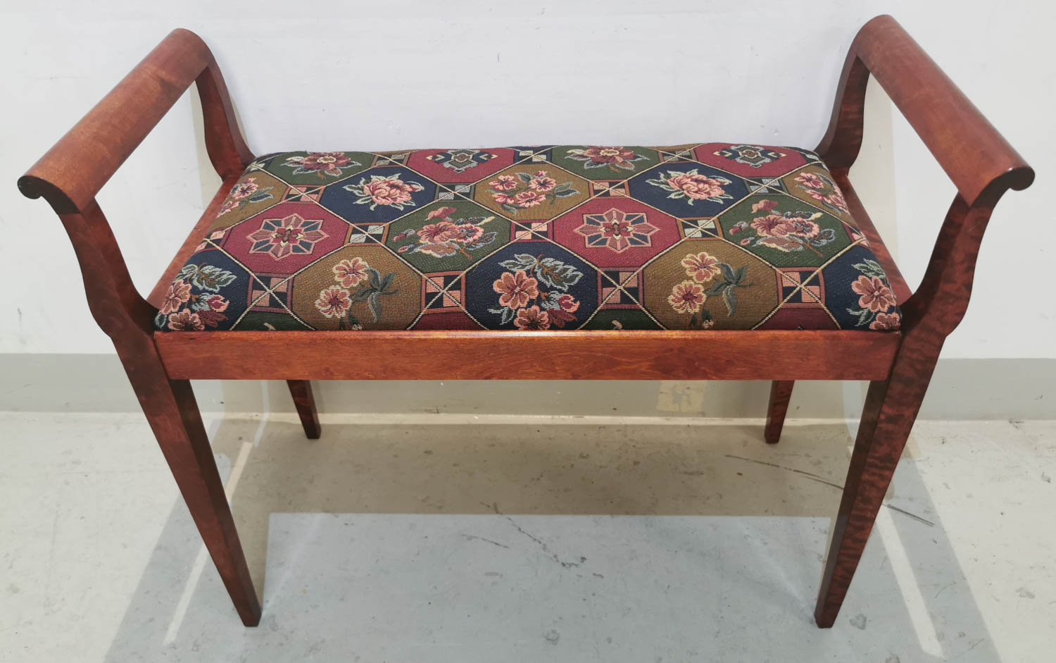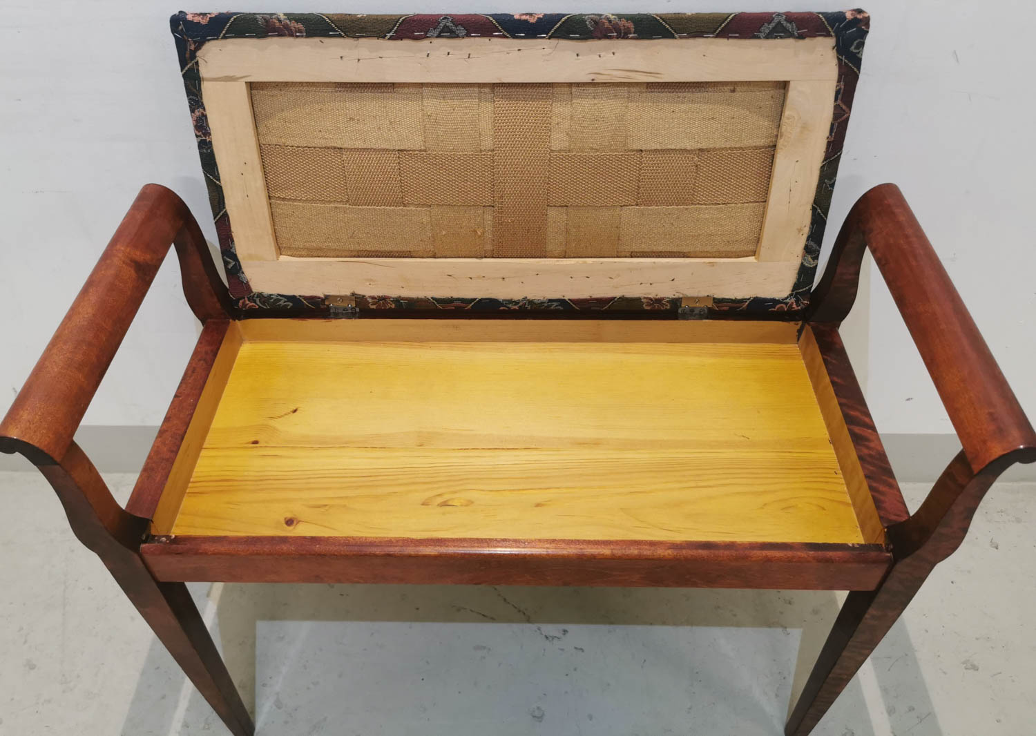 Pianorahi, tyynyllä, saranoitu kansi, siisti ja hyväkuntoinen, 1900-luvun alkupuoli, eteiseen tai sängyn päätyyn, 85x37cm istuinkorkeus 52cm