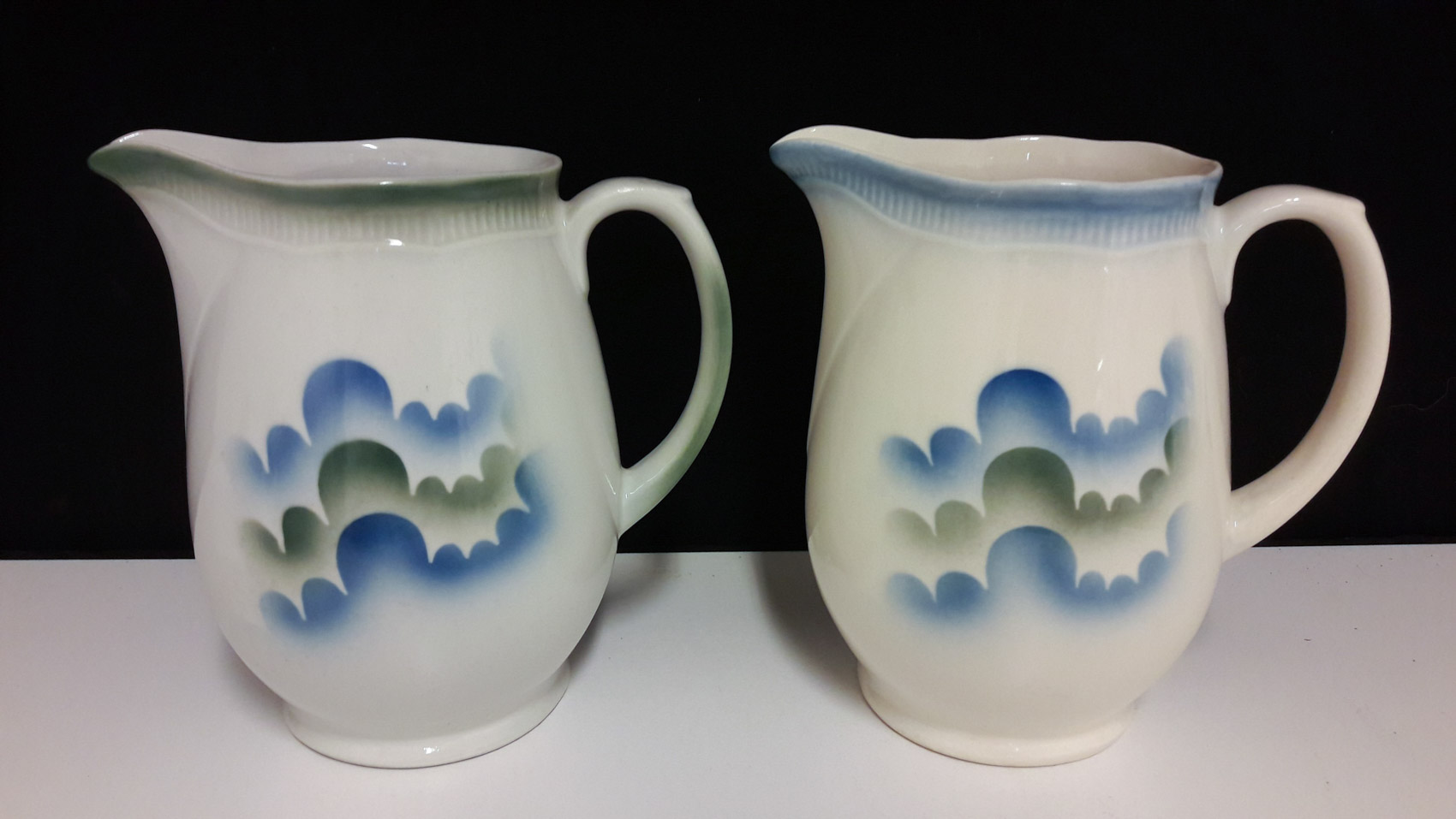 Arabia Pilvi maitokannuja 2kpl, korkeus 16.5cm hinta 155€ kpl.