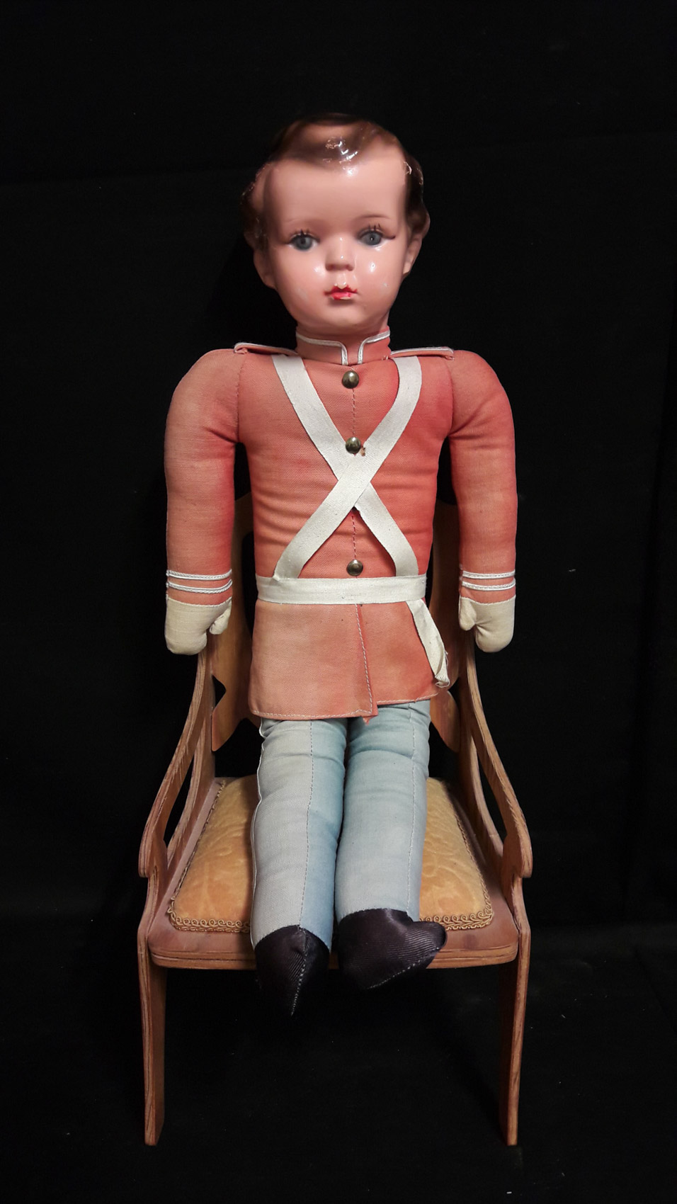 Poikanukke, kangasvartalo, pituus 45cm, 1900 luvun alkupuoli.