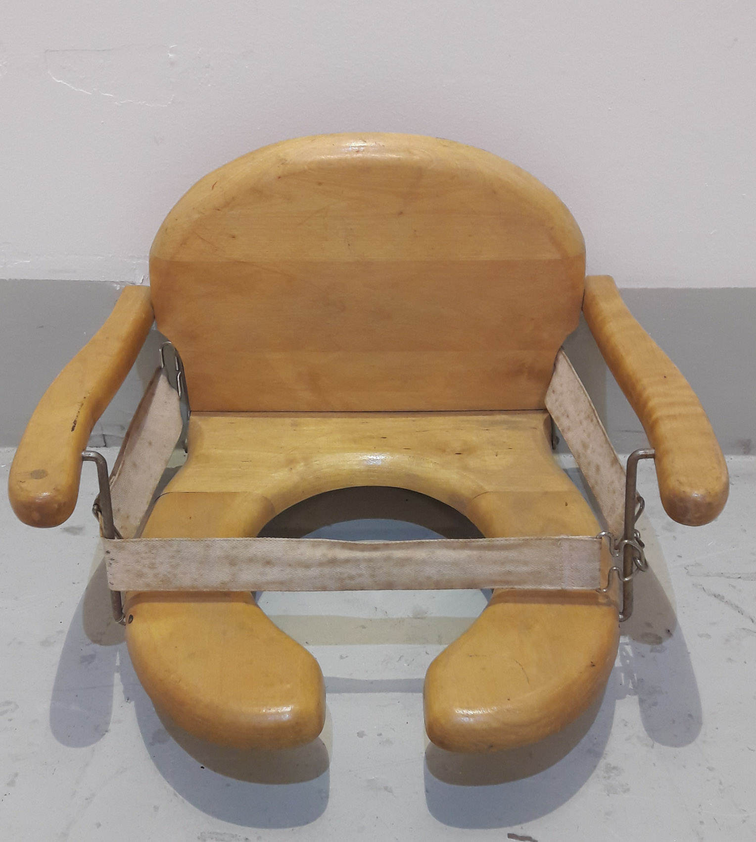 Lasten ns. pottaistuin, lakattu koivua, 1900 luvun alkupuolelta.