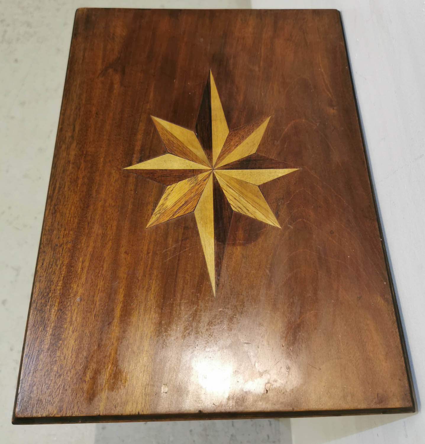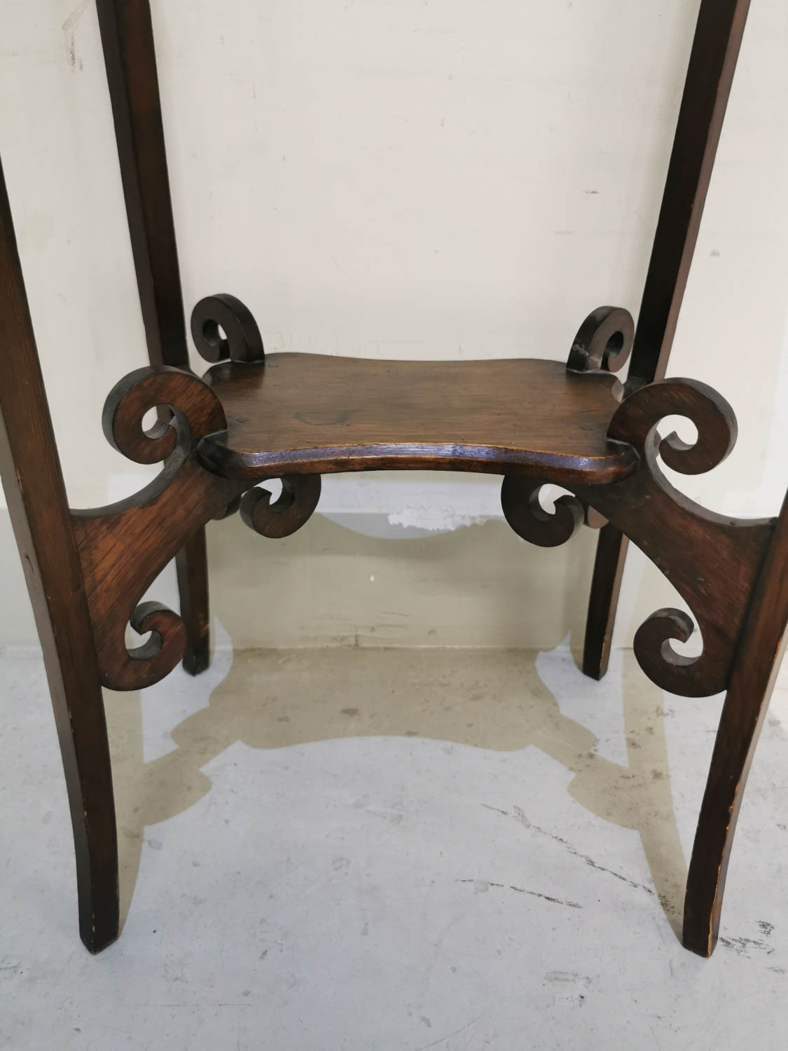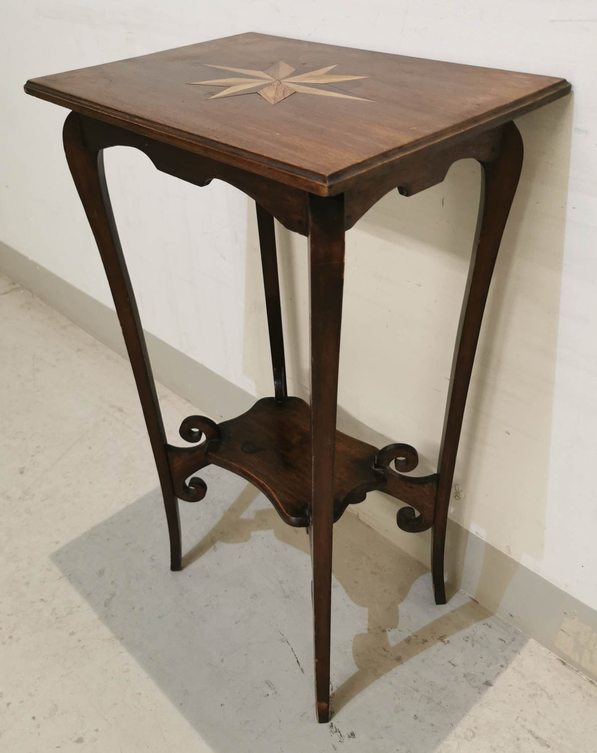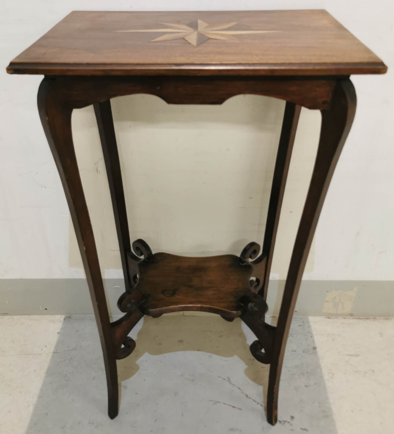 Pöytä, kauniilla intarsia kuviolla, lamppupöytä,kukkapöytä, ym, 1900-luvun alkupuoli, 46 x 33 cm. Korkeus 79cm