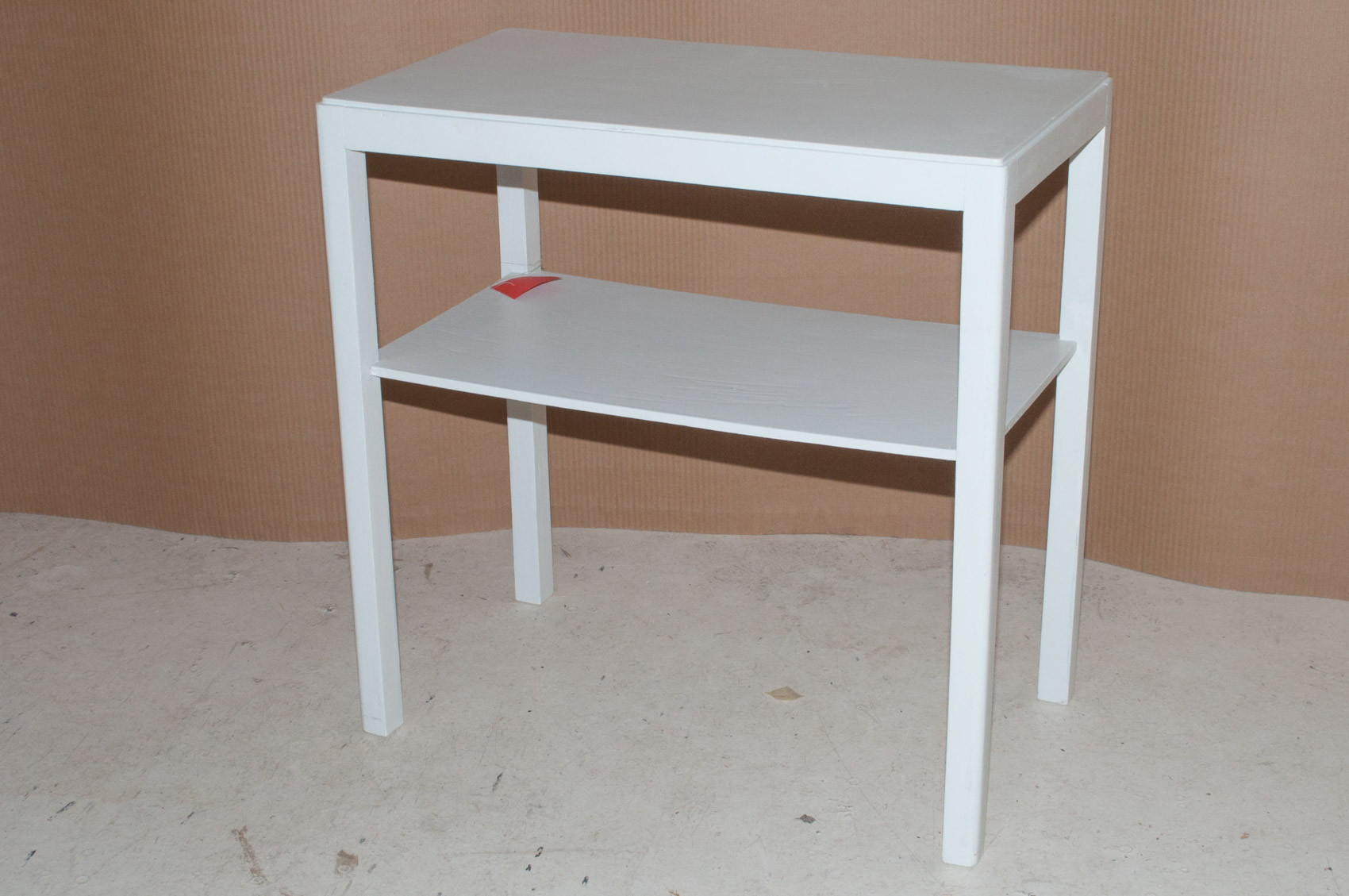 Pieni kunnostettu vaalea pöytä lehtitasolla noin 1940-1950 -luvun vaihteesta
