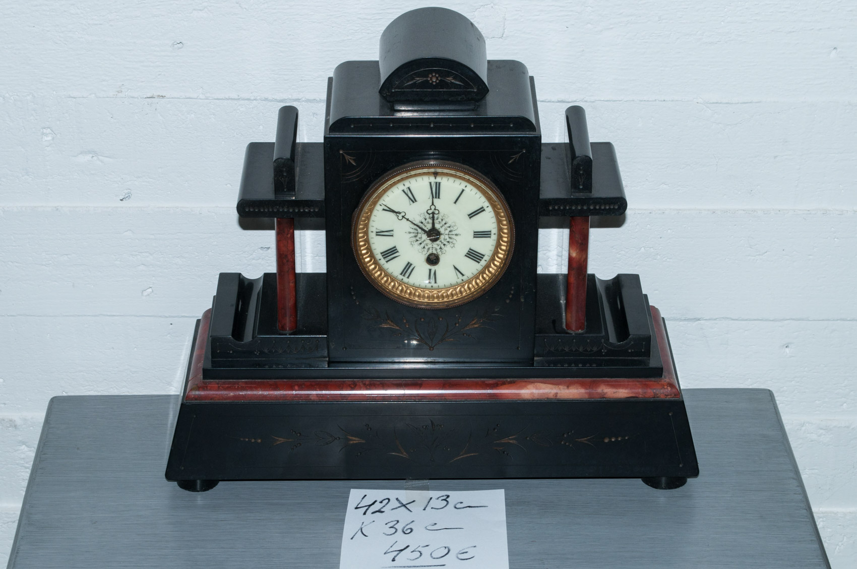 Ranskalainen marmorinen pöytäkello noin 1890 luvulta, toimi ja ehjä.