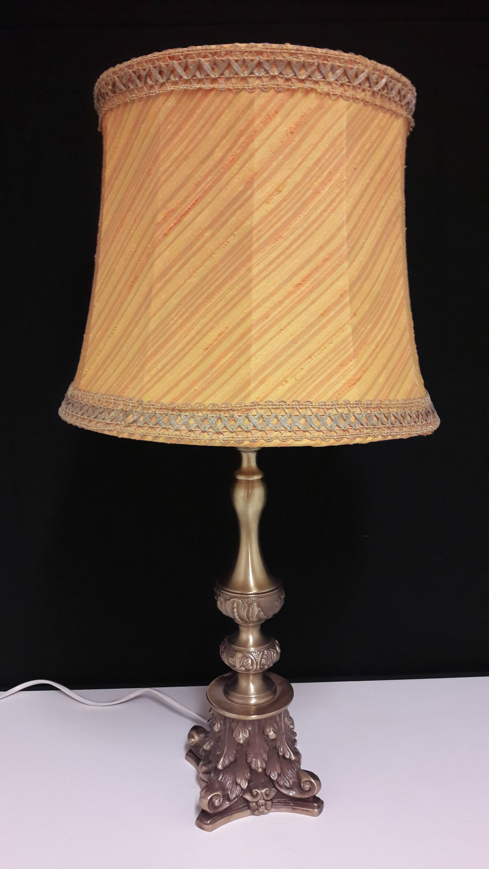 Pöytävalaisin, messinkinen valettu upea jalka, 1900 luvun puoliväli, varjostin ei alkuperäinen.