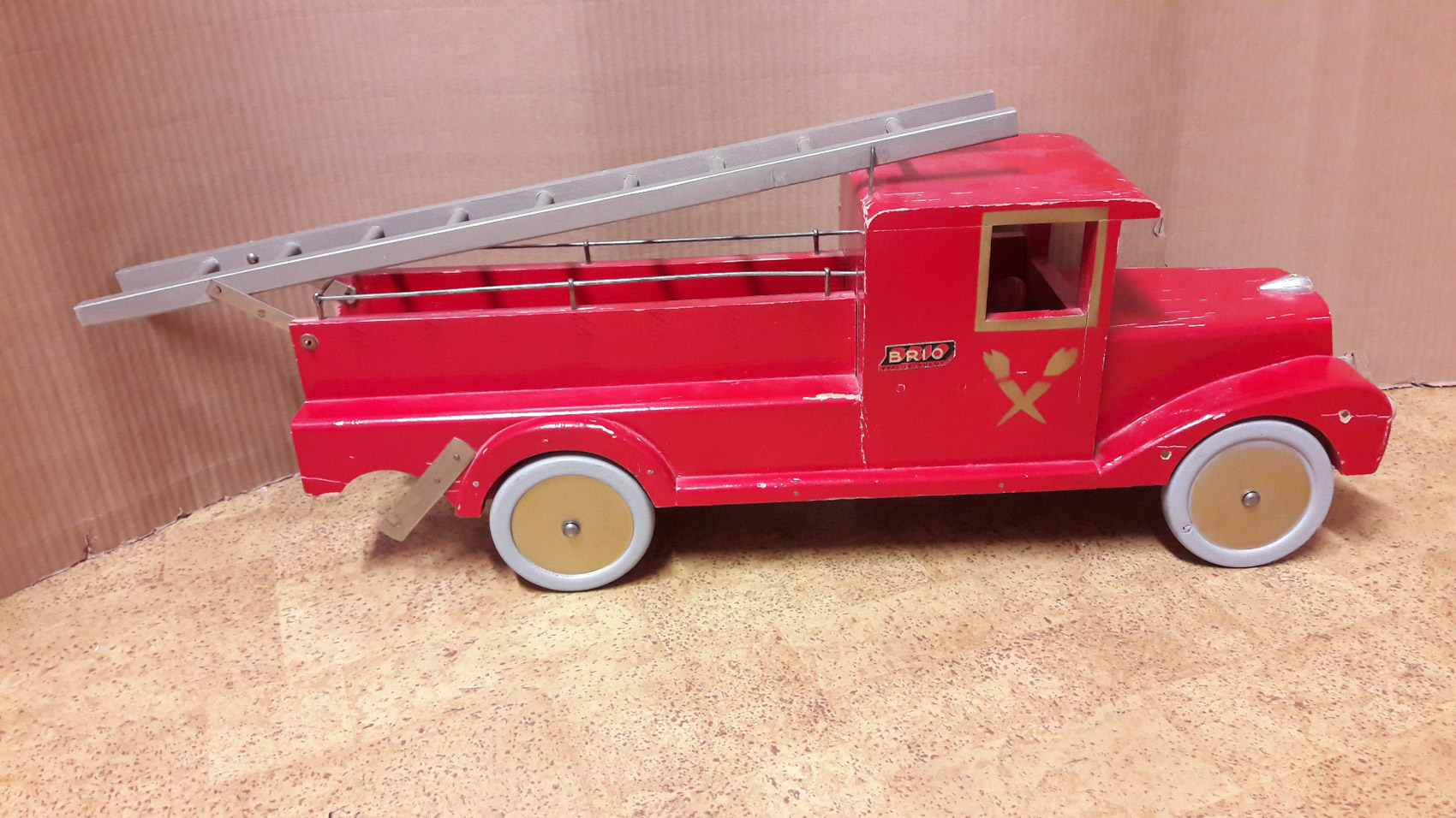 Brio iso puinen tikas paloauto, vuodelta 1949 pituus noin 60 cm siisti vanha lelu hinta 275€