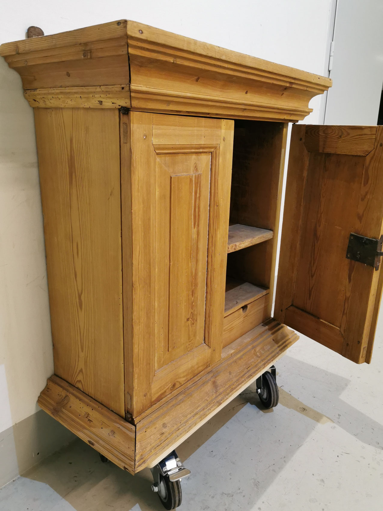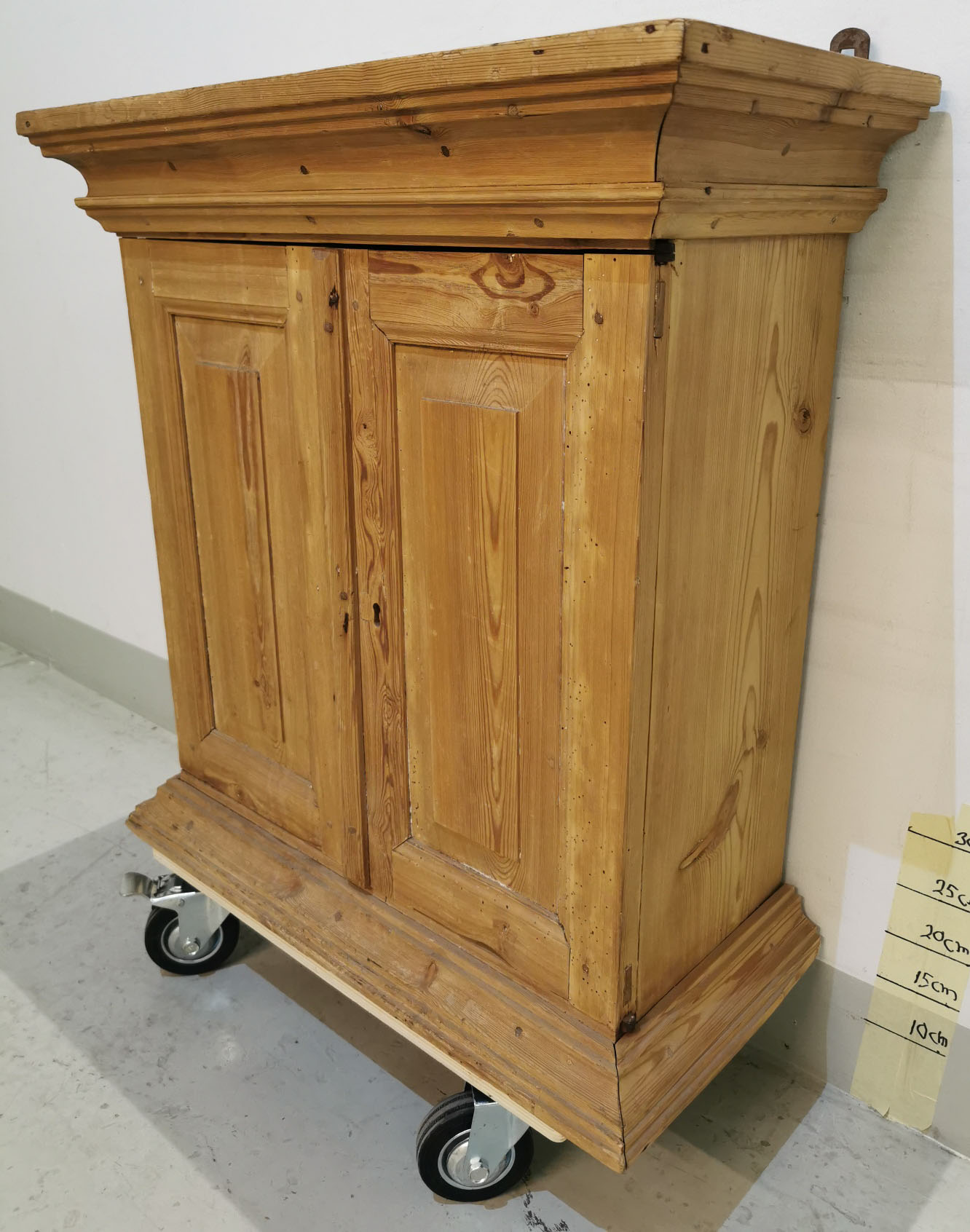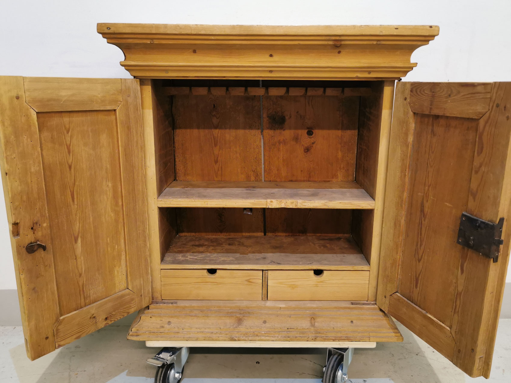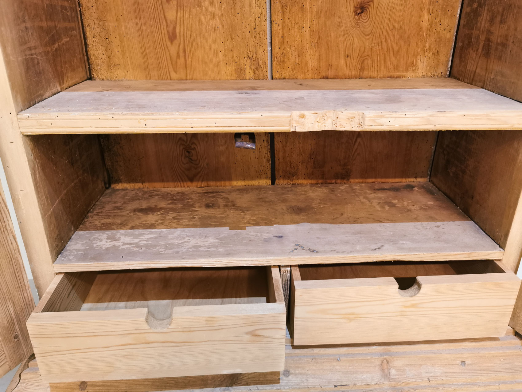 Seinäkaappi, 1700-1800 -luvun vaihde, 70 x 33 cm korkeus 74 cm, ei avainta, laatikoita 2 kpl, tehty myöhemmin, lusikkahylly.