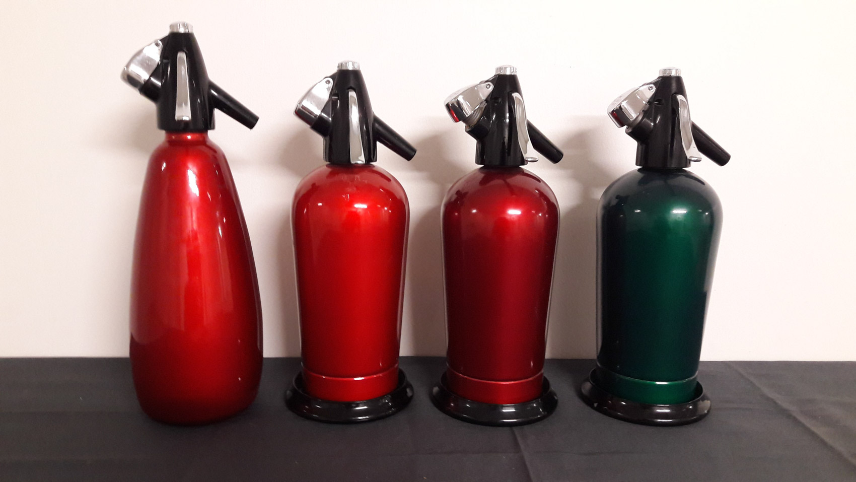 Sifoneja 4kpl, 3 punaista ja 1 vihreä, 1960 luvulta, myydään kaikki kerralla, 250€, tai 95€ 1kpl
