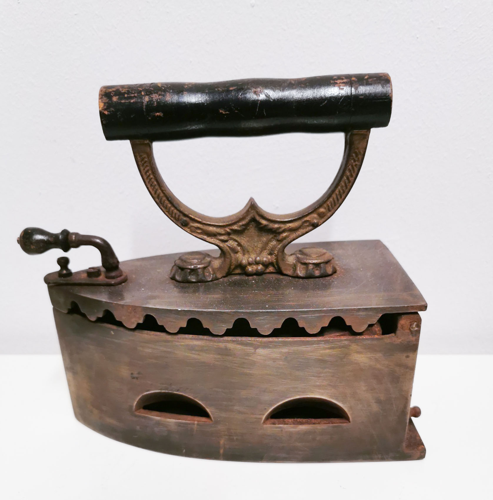 Iso, raskas, silitysrauta, 1800 luvulta, pituus 24cm korkeus 22cm