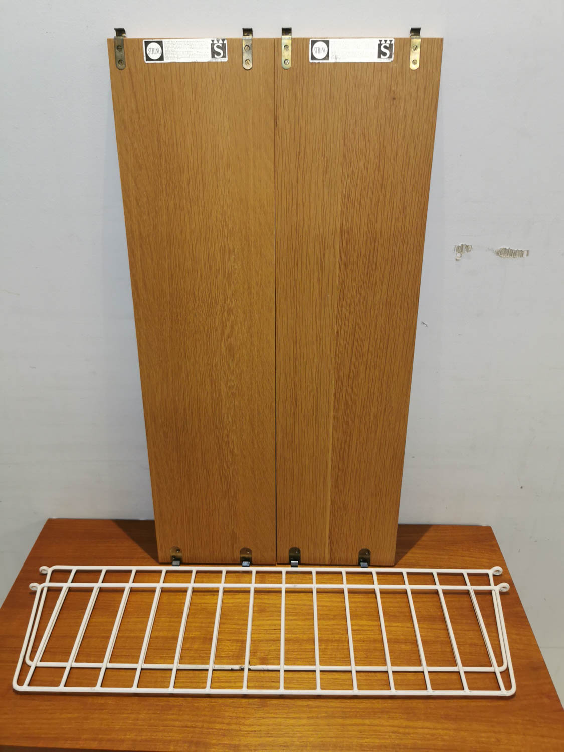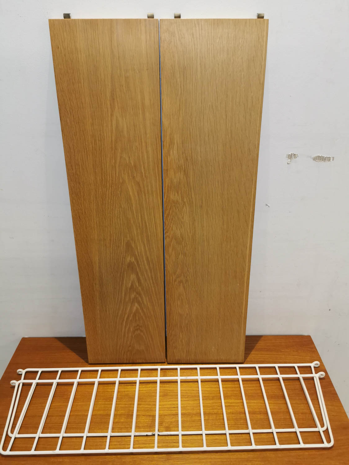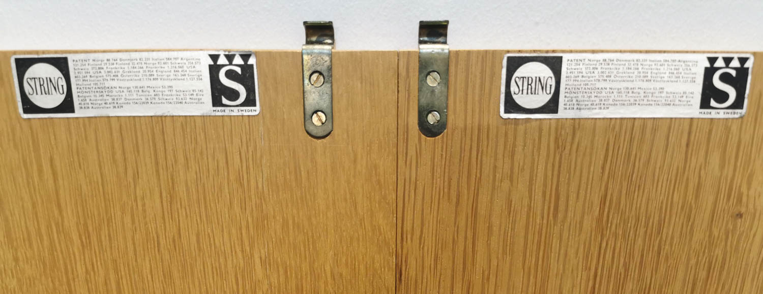 Nils & Kaijsa Strinning, Aito Stringhylly, noin 1950-luvulta, alkuperäinen tarra molemmissa hyllyssä, hyllyt 78x20cm , päädyt korkeus 76cm
