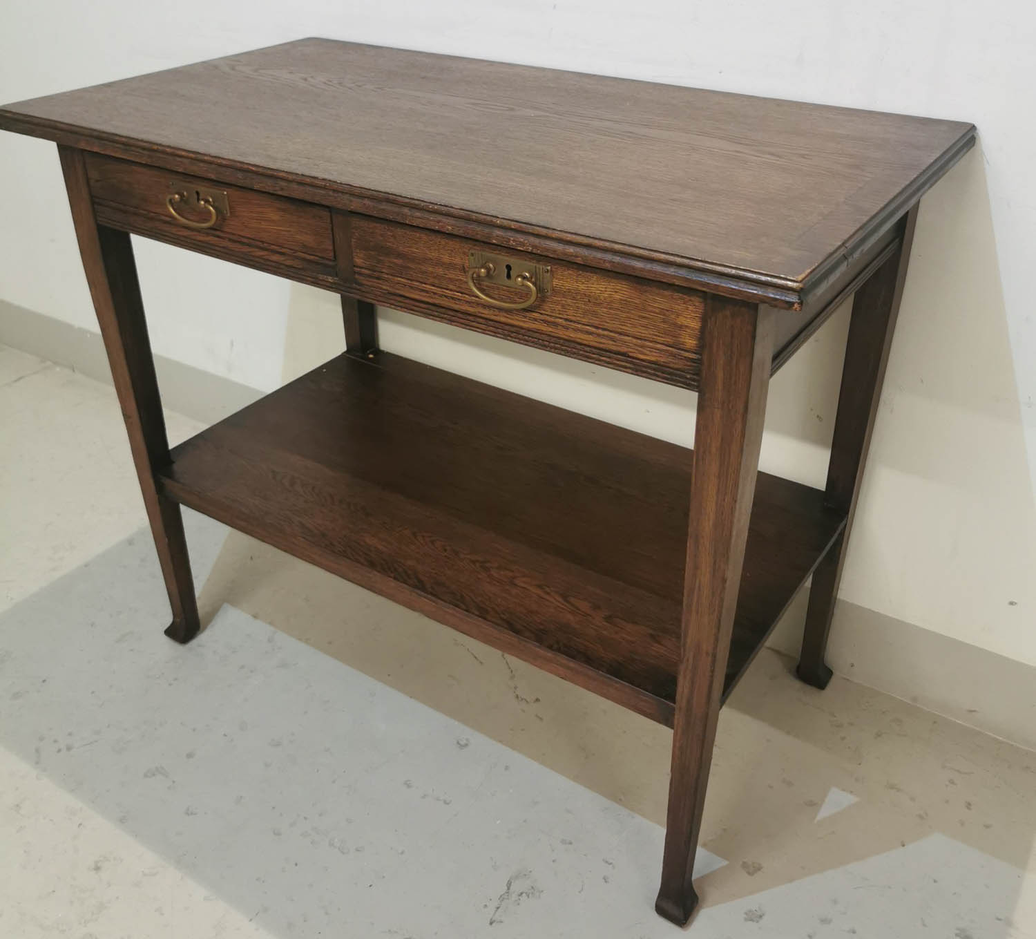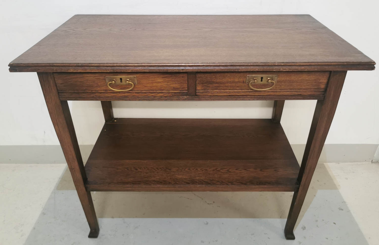 Tammipöytä, ns tarjoilupöytä, 1900 luvun alku, kahdella laatikolla ja alatasolla, 100 x 54 cm korkeus 83cm