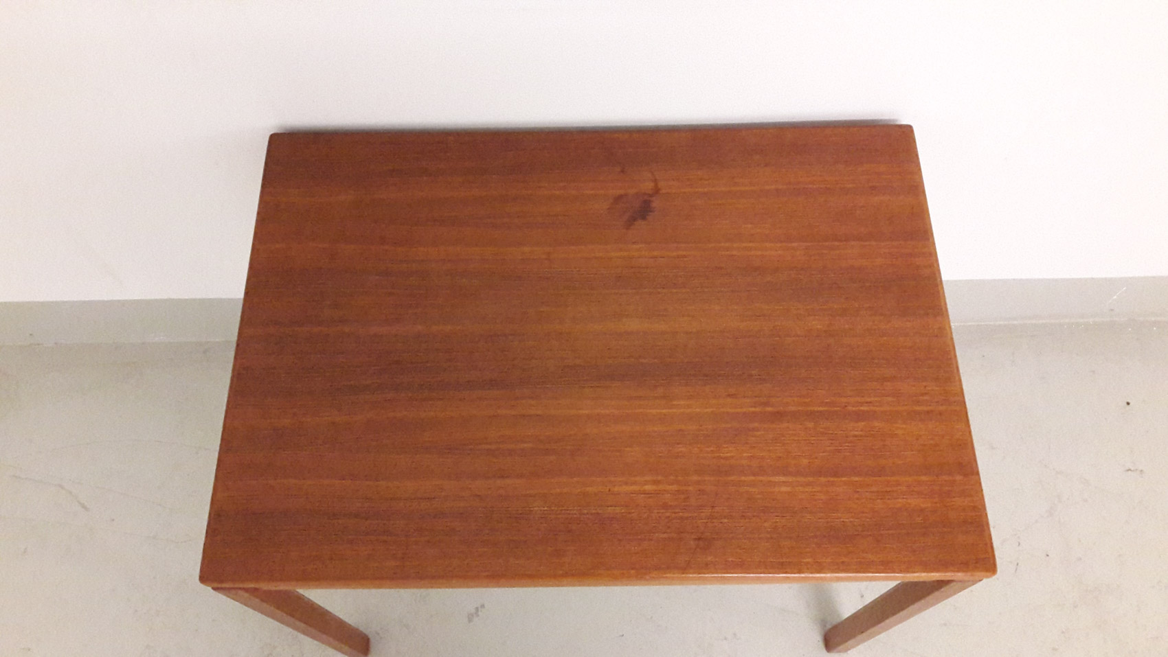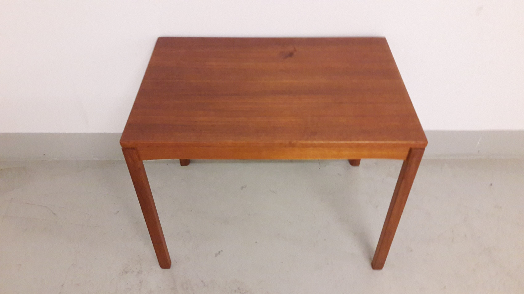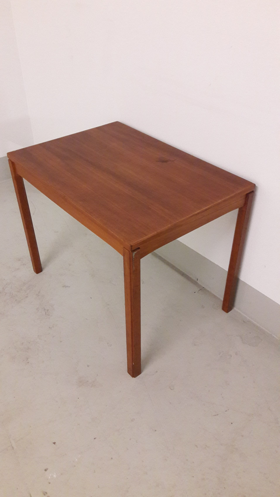 Teak sivupöytä, 1950-60 luvulta, käy myös sohvapöydäksi, tai nojatuolin viereen, 65×45 korkeus 50cm, kannessa pieni tumma tahra/jälki katso kuvat