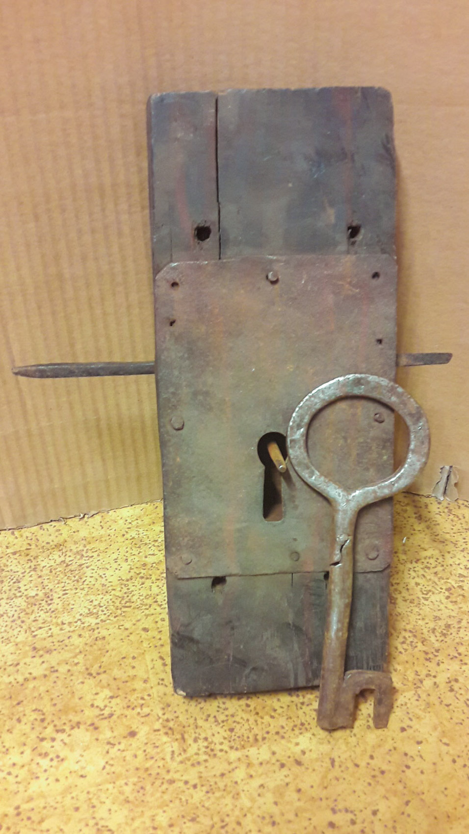 Puinen lukko ja avain tod. näk.1700-luvulta upea sisustusesine.