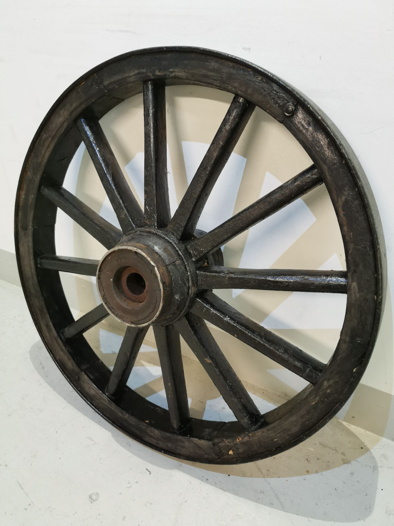 Vaunun pyörä, 1800-luvulta, teräsvanteen leveys 80 mm, halkaisija 76 cm